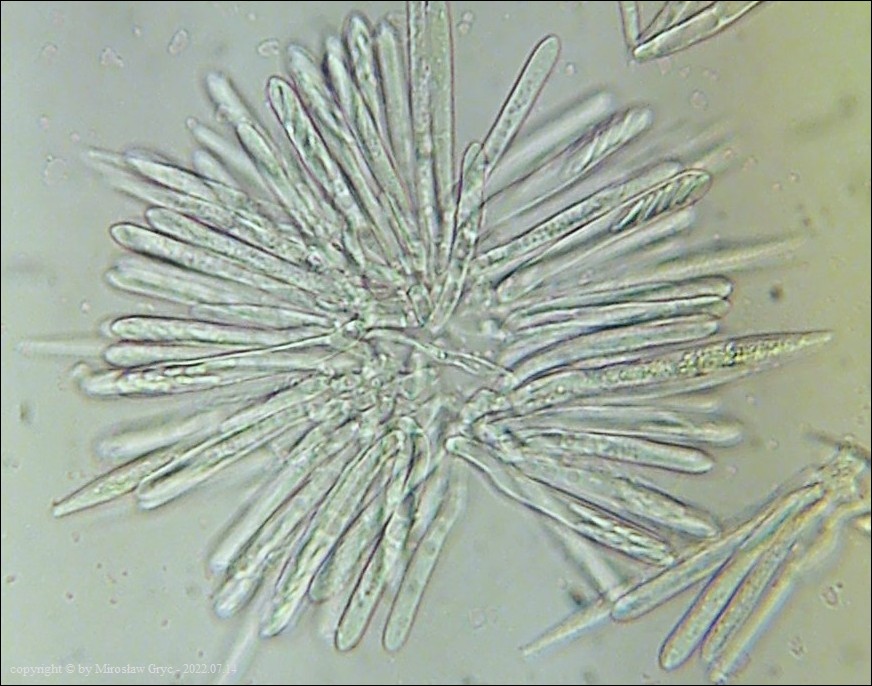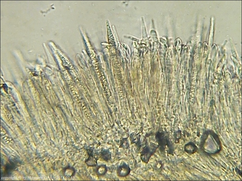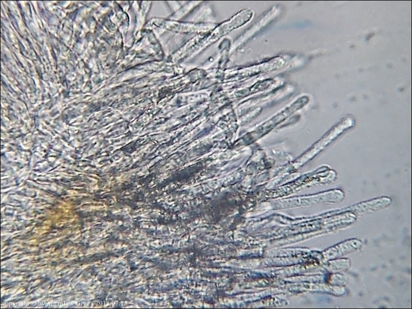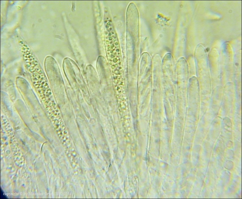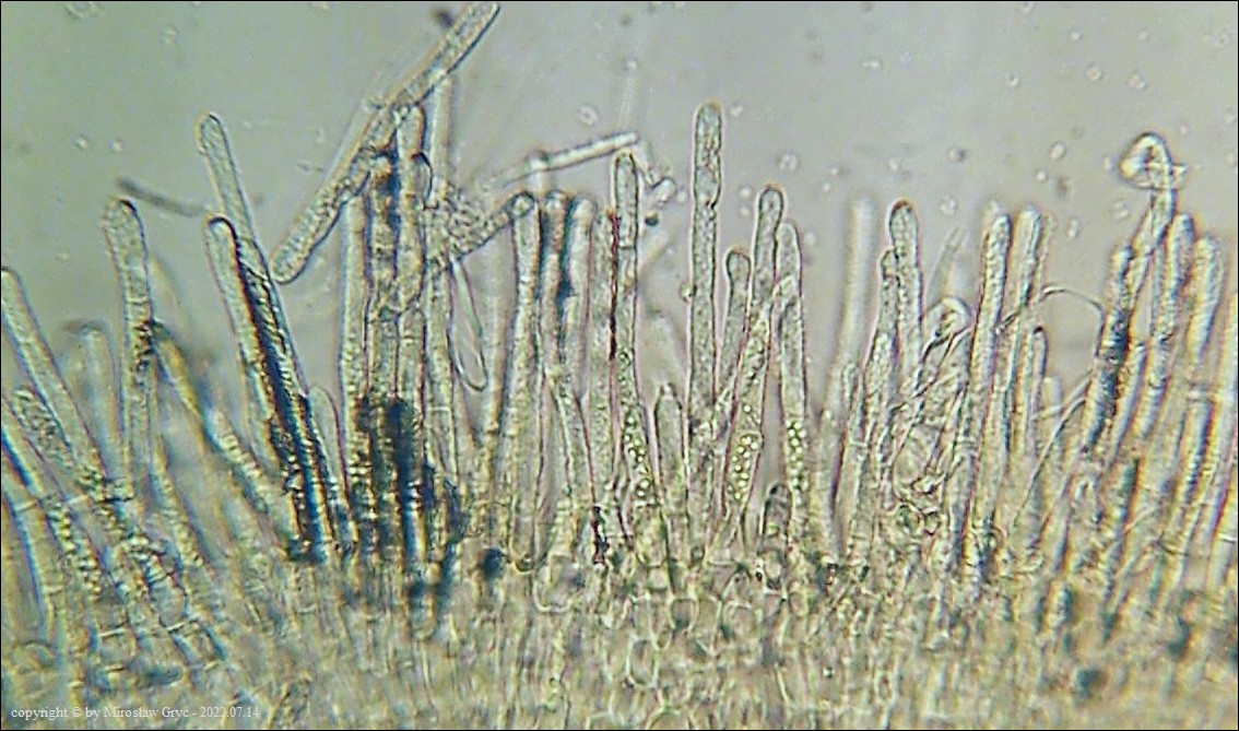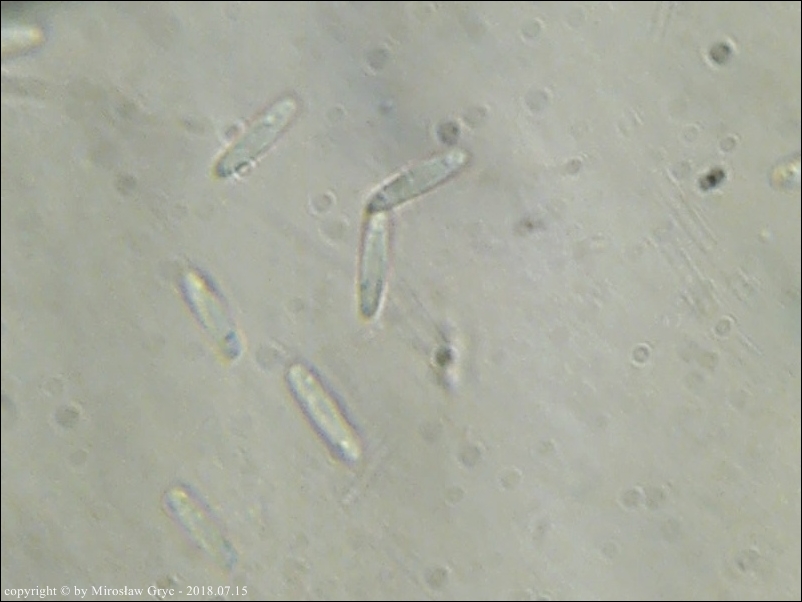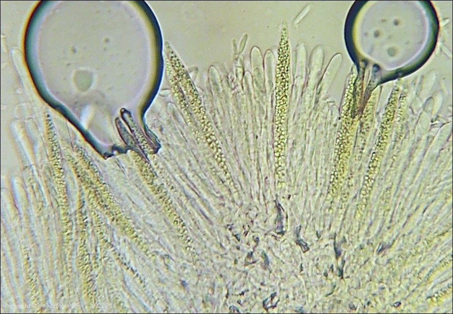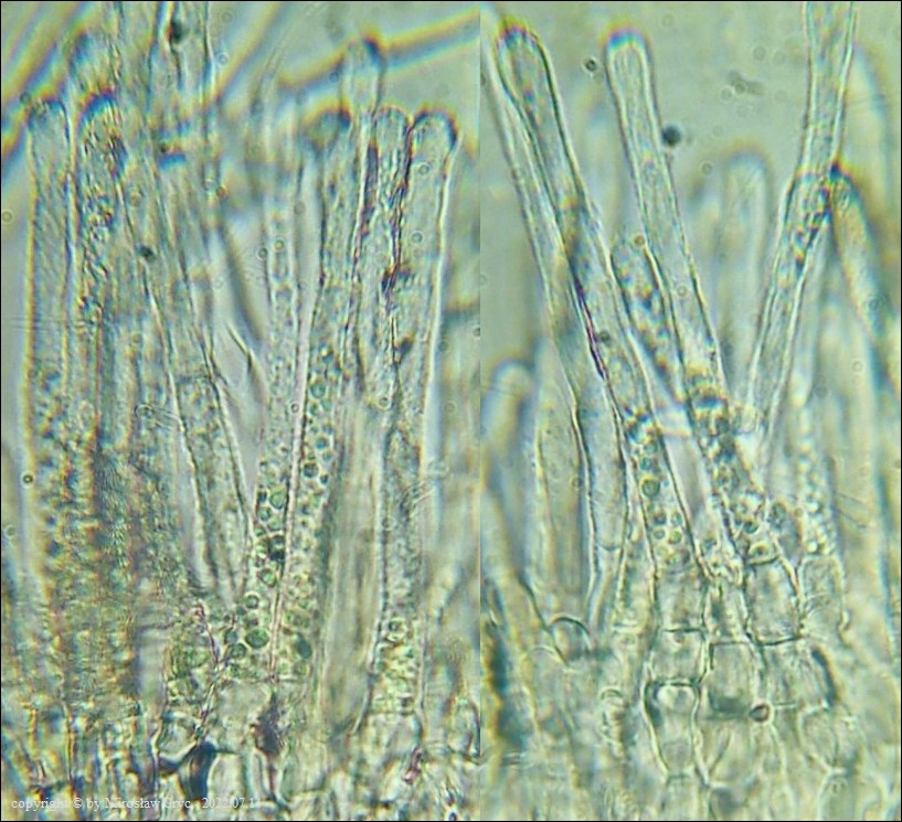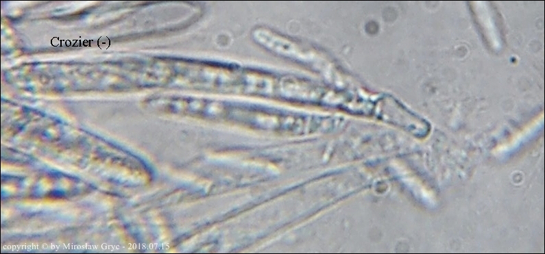 Tym razem zdjęcia mikroskopowe prezentują cechy owocników o hymenium zabarwionym na żółto.