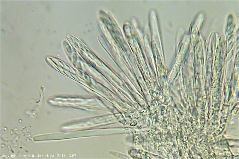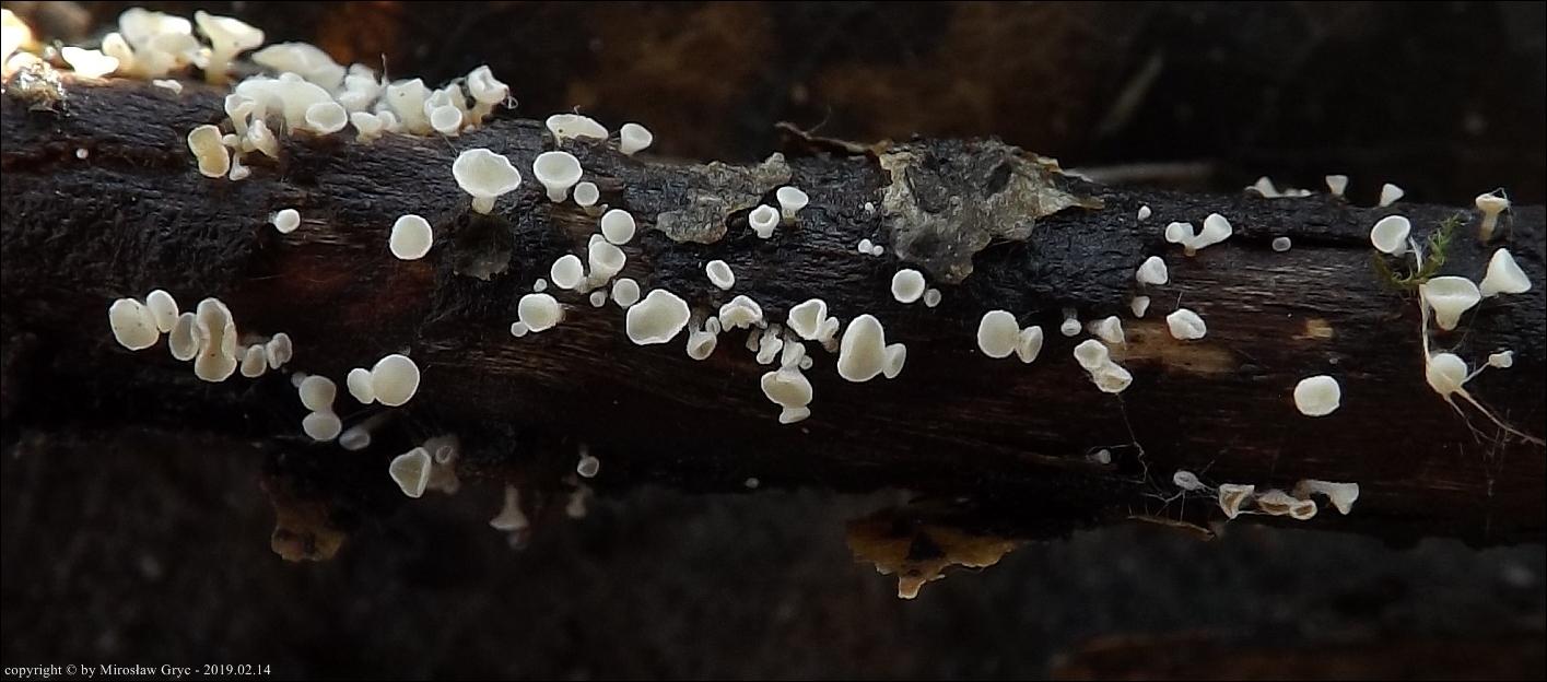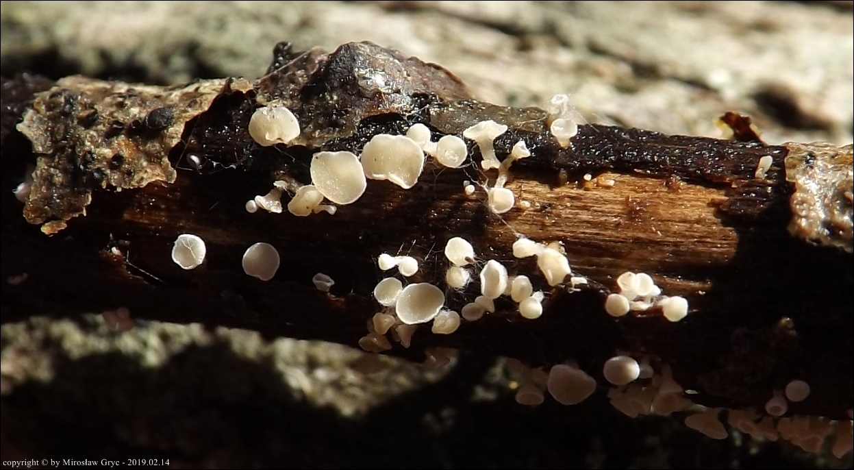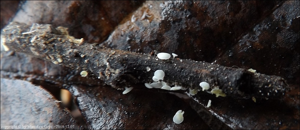 Substrat: Owocniki na wierzbowej gałązce leżącej w rowie melioracyjnym.