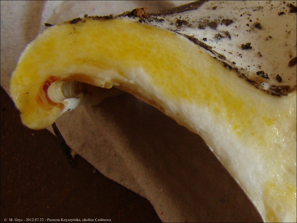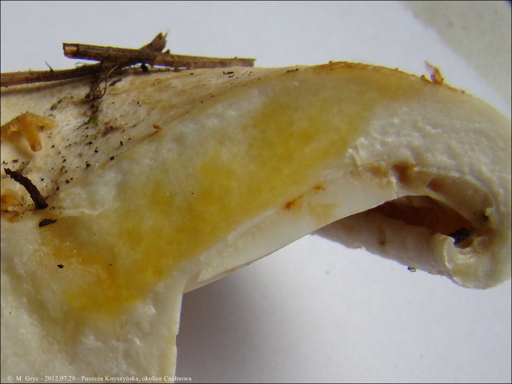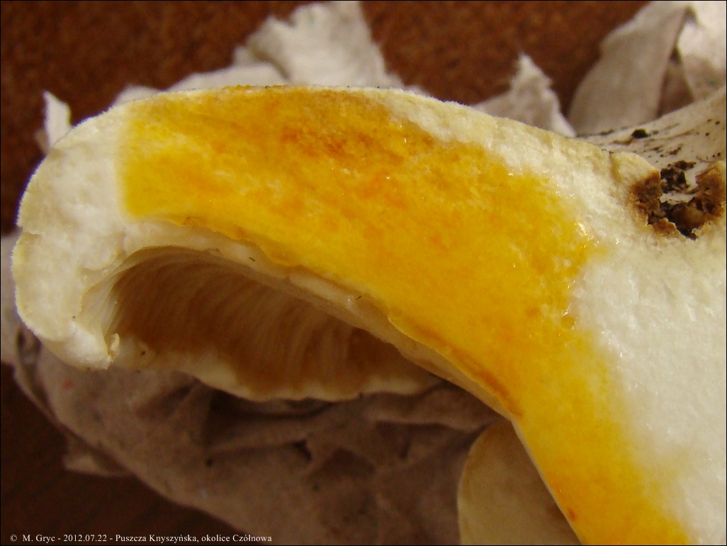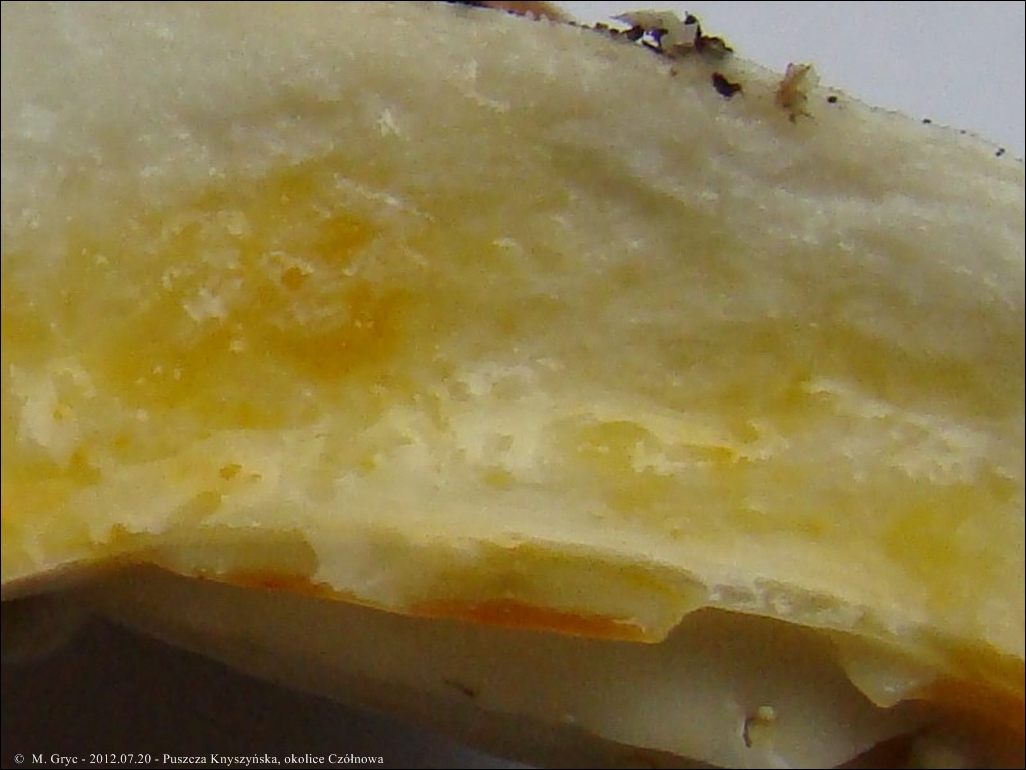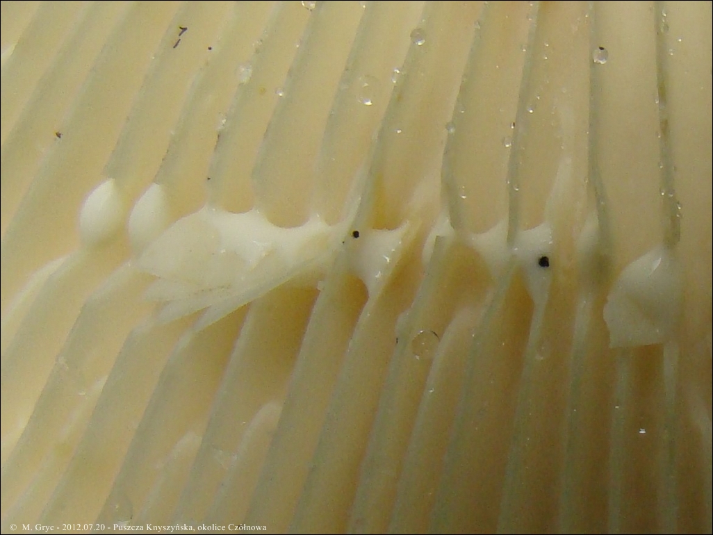 Mleczko: białe, bardzo wolno słabo żółknące, po oddzieleniu od miąższu natychmiast mocno palące.