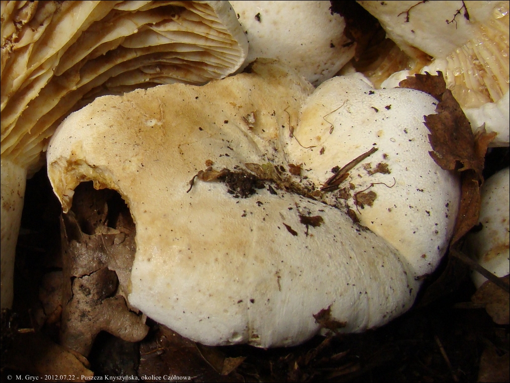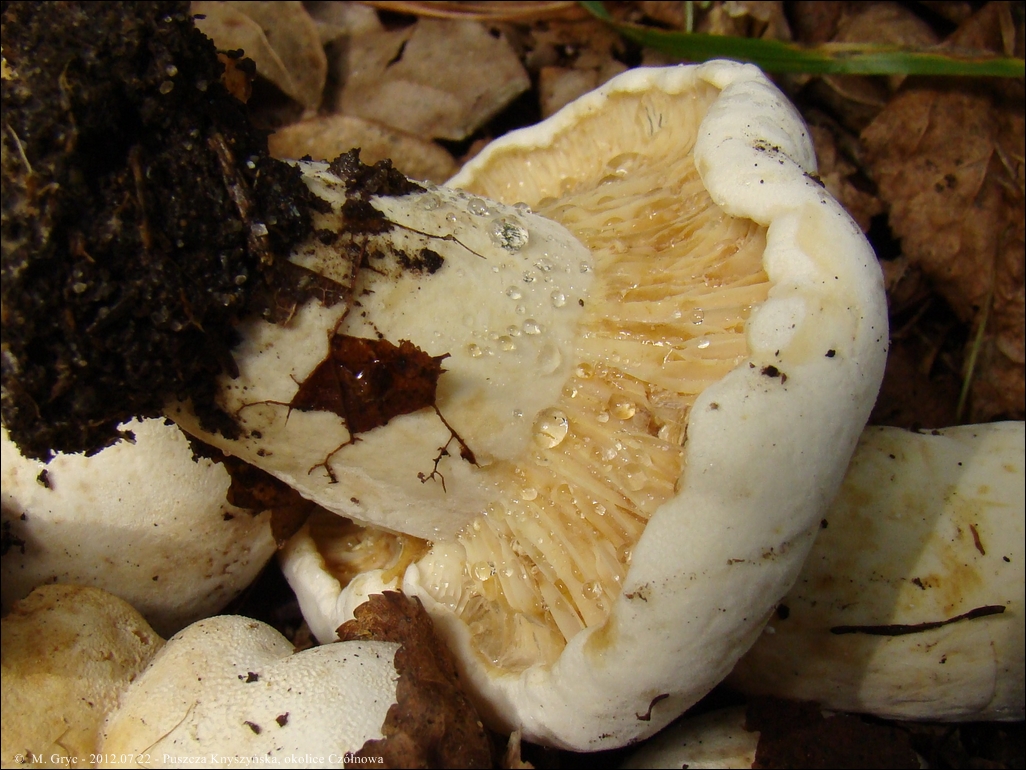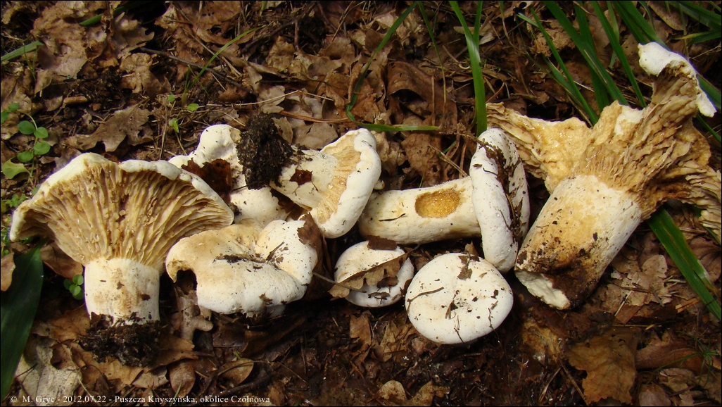 Krótko mówiąc: - jeżeli znajdziemy w lipcu-siepniu, na terenie Puszczy Knyszyńskiej, białego mleczaja o szeroko rozstawionych blaszkach, to najpewniej będzie to m. piekący. Mleczaj chrząstka w tych miesiącach nie występuje a jeśli już, to bardzo rzadko.