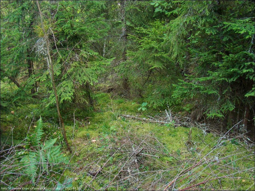 Substrat: Zdjęcia pozostałe (02-06), przedstawiają siedlisko oraz owocniki z terenu wilgotnego, las typowo świerkowy rosnący nad leśnym strumieniem, podłoże mocno mszyste.