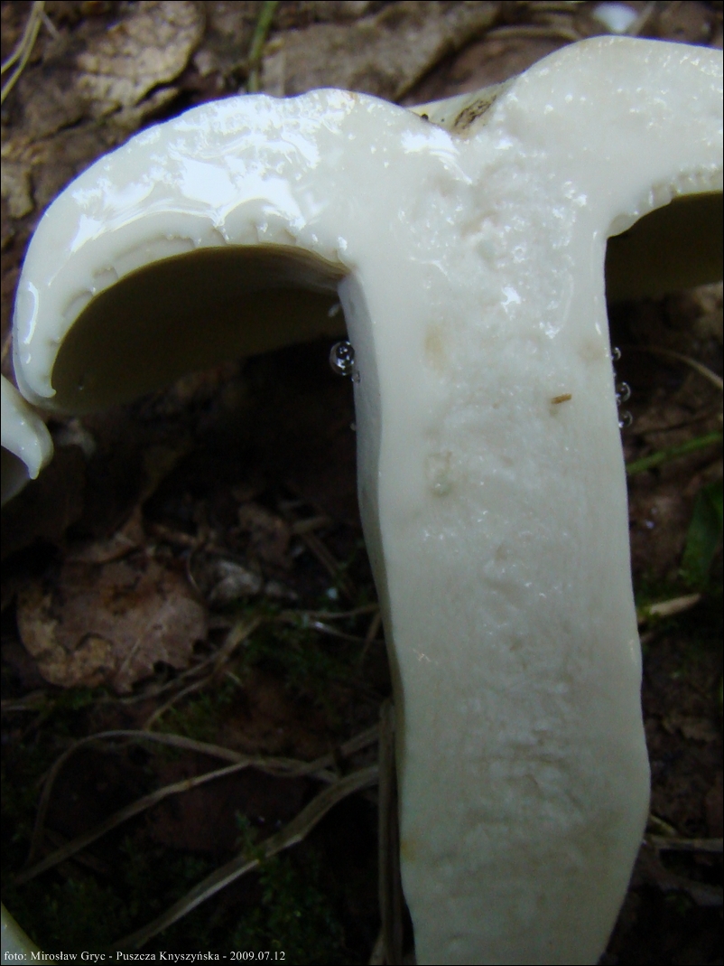 Mleczko: białe obfite, z czasem nieznacznie żółknące, mocno piekące.