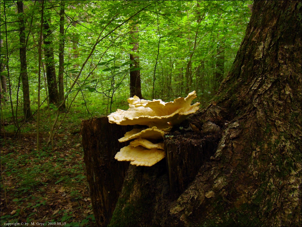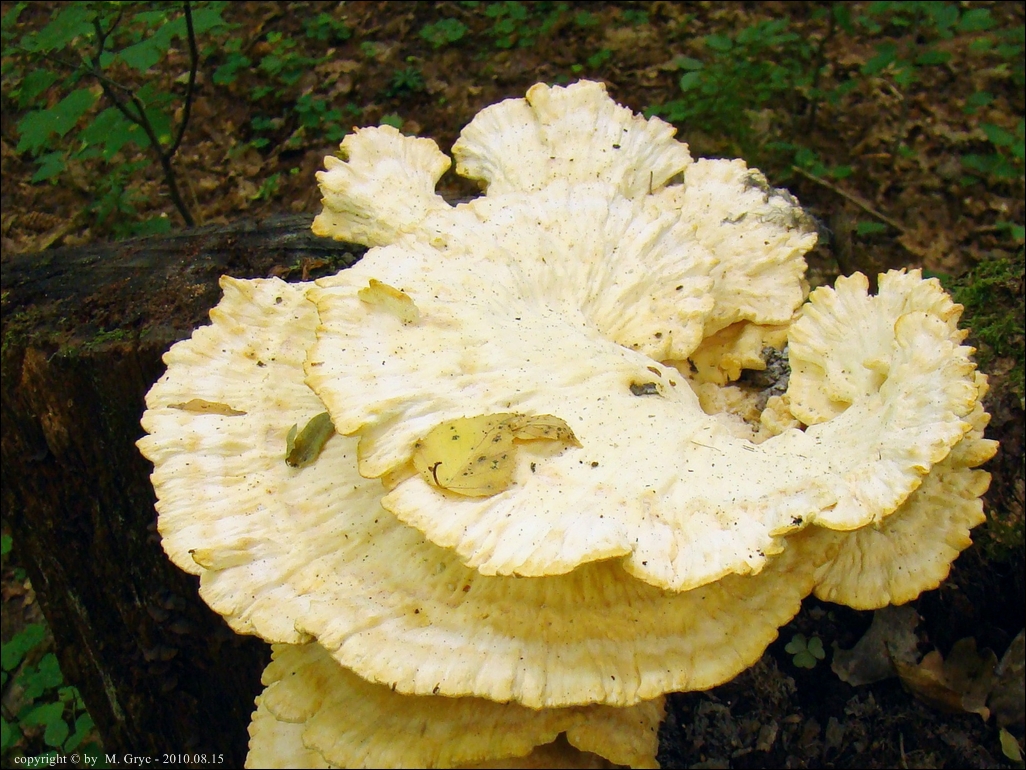 Lokalizacja: Zdjęcia (11-12) - 2010.08.15 - pniak po ściętym dębie, owocniki mocno już podstarzałe (zejściowe).