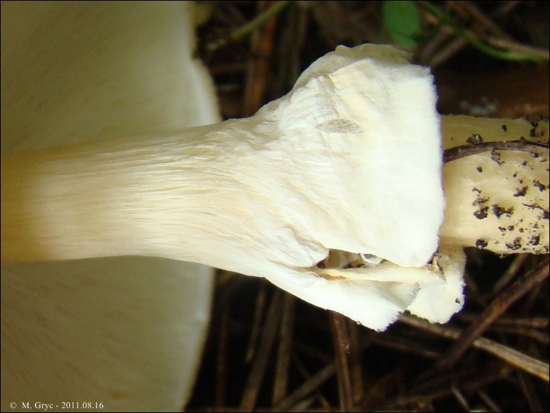 | 2016.09.04 | Wyrobisko pożwirowe na E od Ogrodniczek, zalesione chałdy po wykopaliskach. | Las w zasadzie iglasty ale te wyrastały w pobliżu kilku drzew liściastych. Gatunek określony mikroskopowo przez B. Gierczyka. Nr. wątku na Bio-Forum 33/906085 . Stanowisko ujęte w pracy zespołowej: Grzyby Puszczy Knyszyńskiej - Anna Kujawa, Błażej Gierczyk, Mirosław Gryc, Marek Wołkowycki - 2019 rok. |