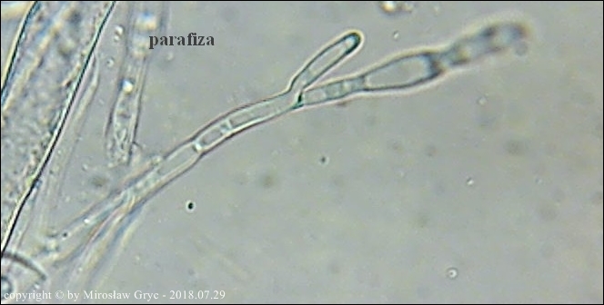 Substrat: Grupka owocników na drodze leśnej, podłoże wilgotne.