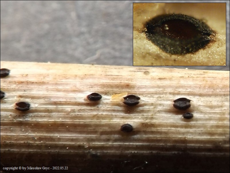 | 2018.07.03 | Nieużytkowane od dłuższego czasu wyrobisko pożwirowe, okolice Ogrodniczek, gm. Supraśl. | Owocniki na obumarłych pędach trzciny (Phragmites sp.). |