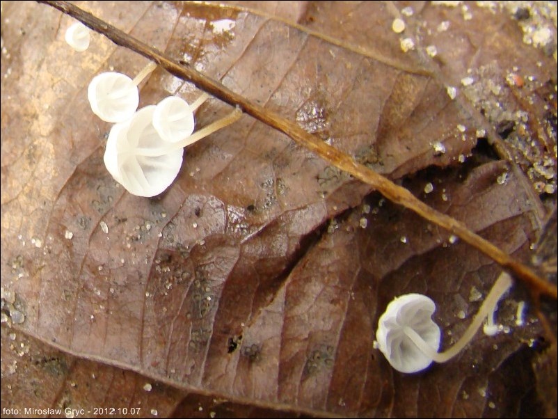 Substrat: grupka owocników na dość mocno już zbutwiałych liściach. Owocniki mikroskopował Waldek Czerniawski.