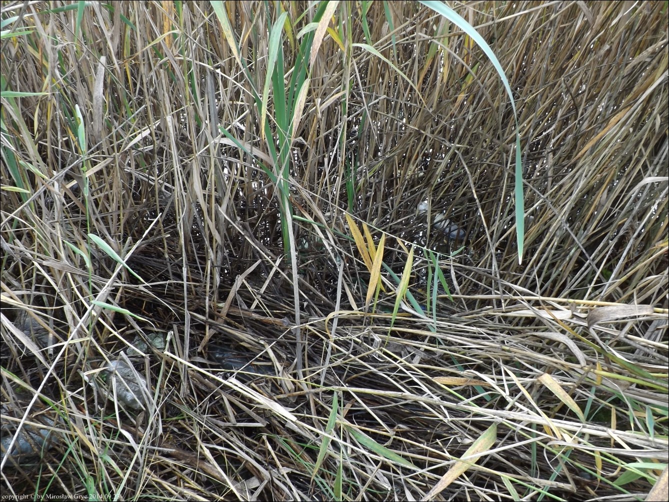 Substrat: Owocniki masowo na ubiegłorocznych pędach trzcin porastających rów melioracyjny.