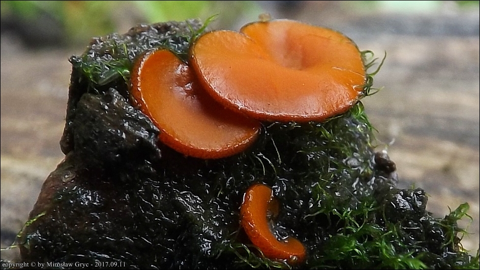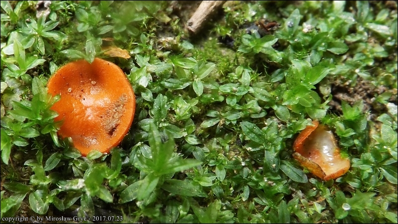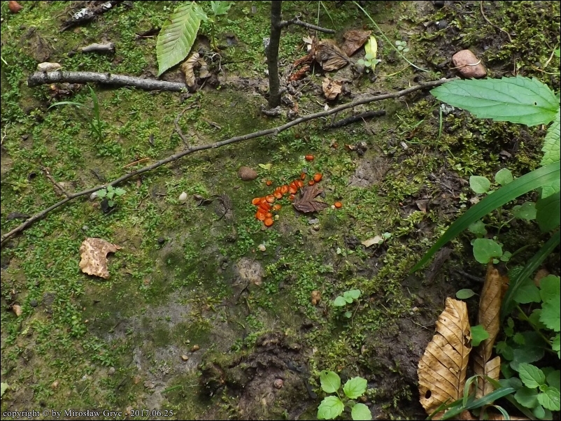 Substrat: Kilka owocników na wilgotnej ziemi wśród mchów.