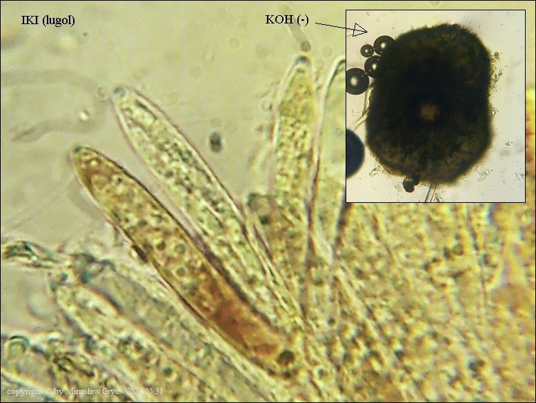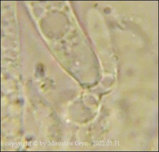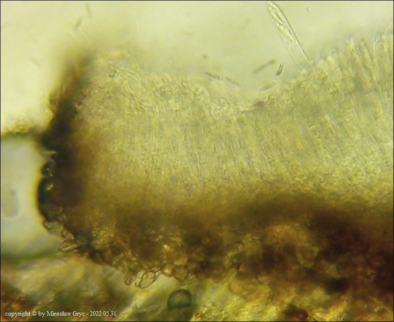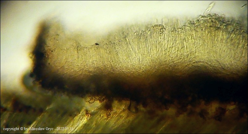 Owocniki bardzo małe o brązowym zabarwieniu na niezidentyfikowanym gatunku trawy.Cechy mikroskopowe niestety nie wskazuja jednoznacznie na konkretny gatunek ale z pewnością można stwierdzić, że najbardziej zbliżone są do tajemniczej grupy M. juncina. Jak zaznaczył Andreas Gminder,podobne mikroskopowo, M. palustris wytwarza owocniki zdecydowanie jaśniejsze.