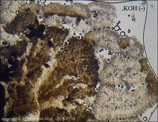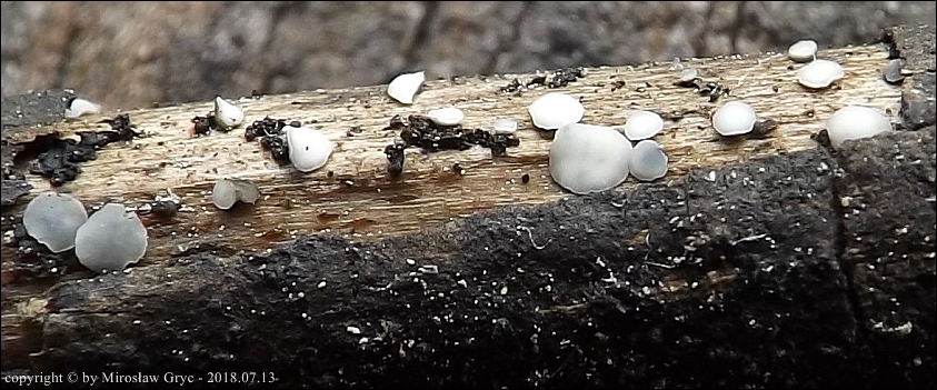 Substrat: Owocniki na leżacej gałązce w zakrzaczeniu wierzbowym.