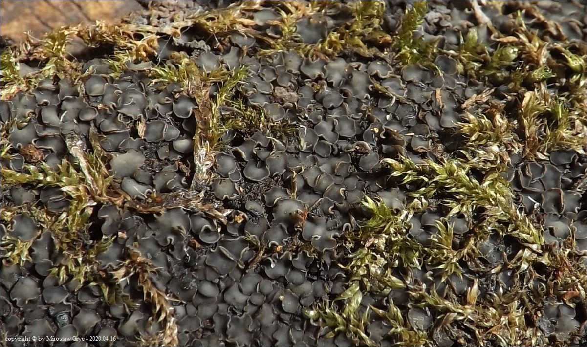 Substrat: Owocniki masowo na pniu olszy (Alnus sp.) leżącym na wilgotnej ziemi.
