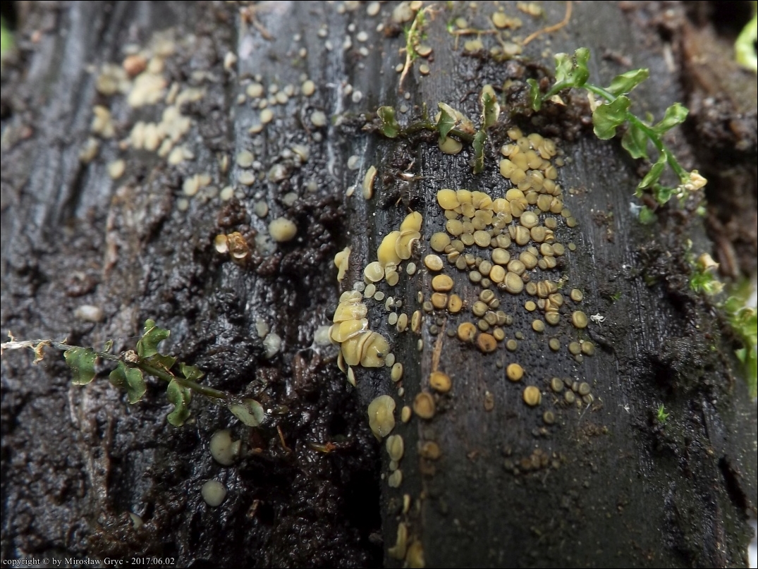 Substrat: Owocniki na kawałku drewna nieznanego pochodzenia, leżącego w źródlisku. Oznaczenie weryfikował Błażej Gierczyk.