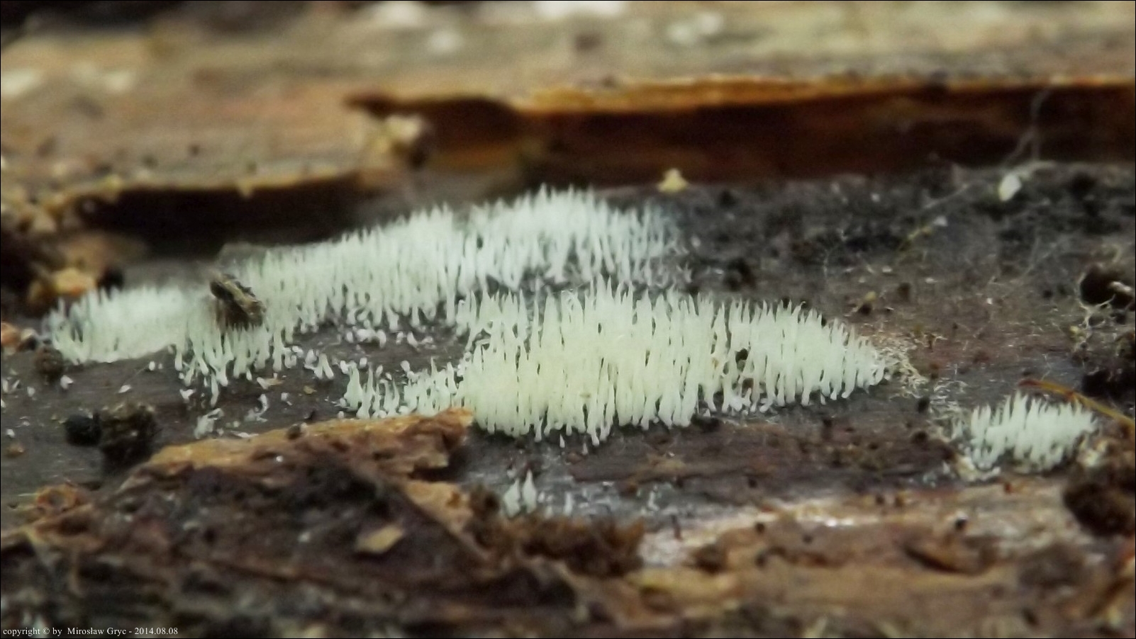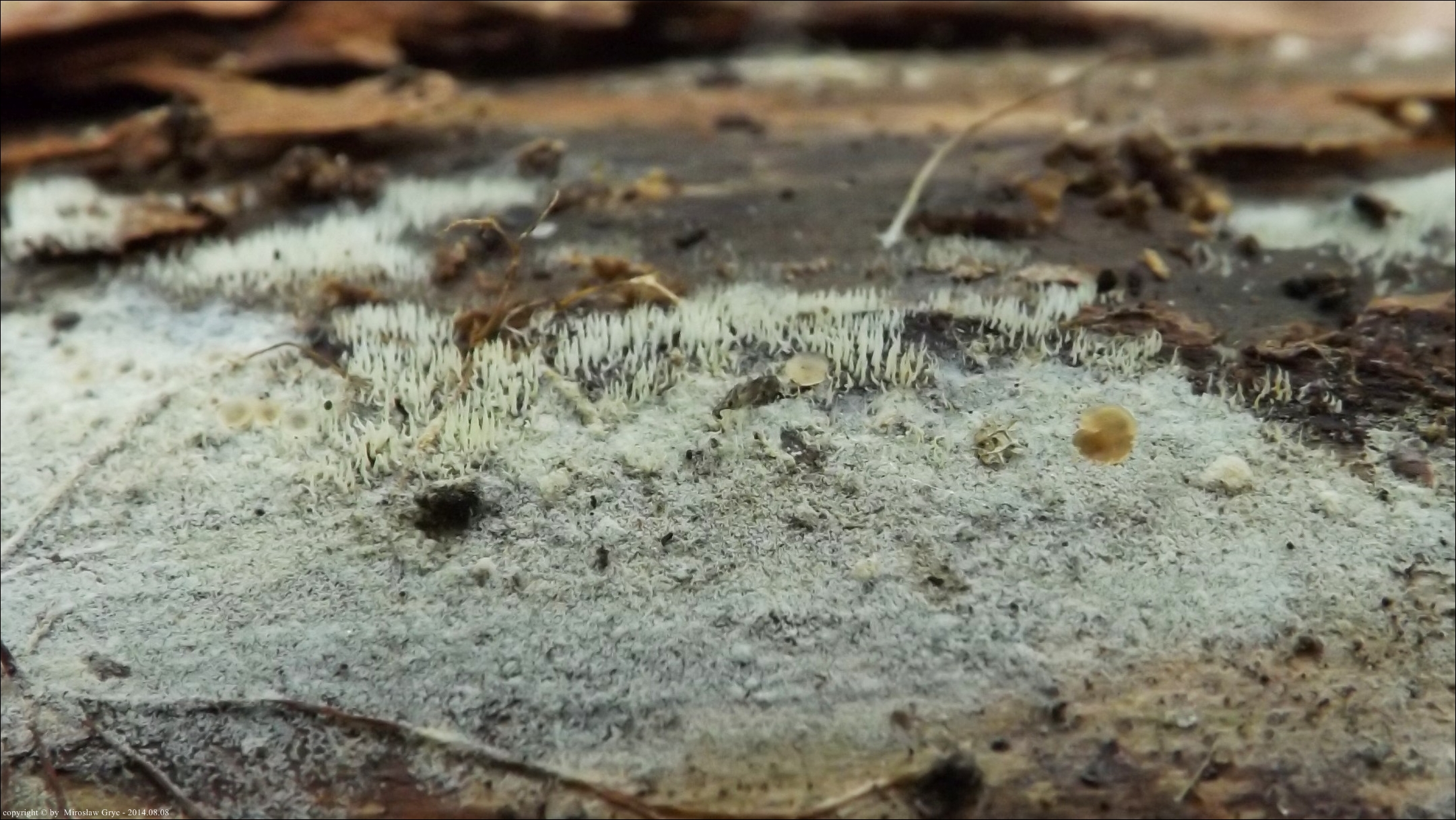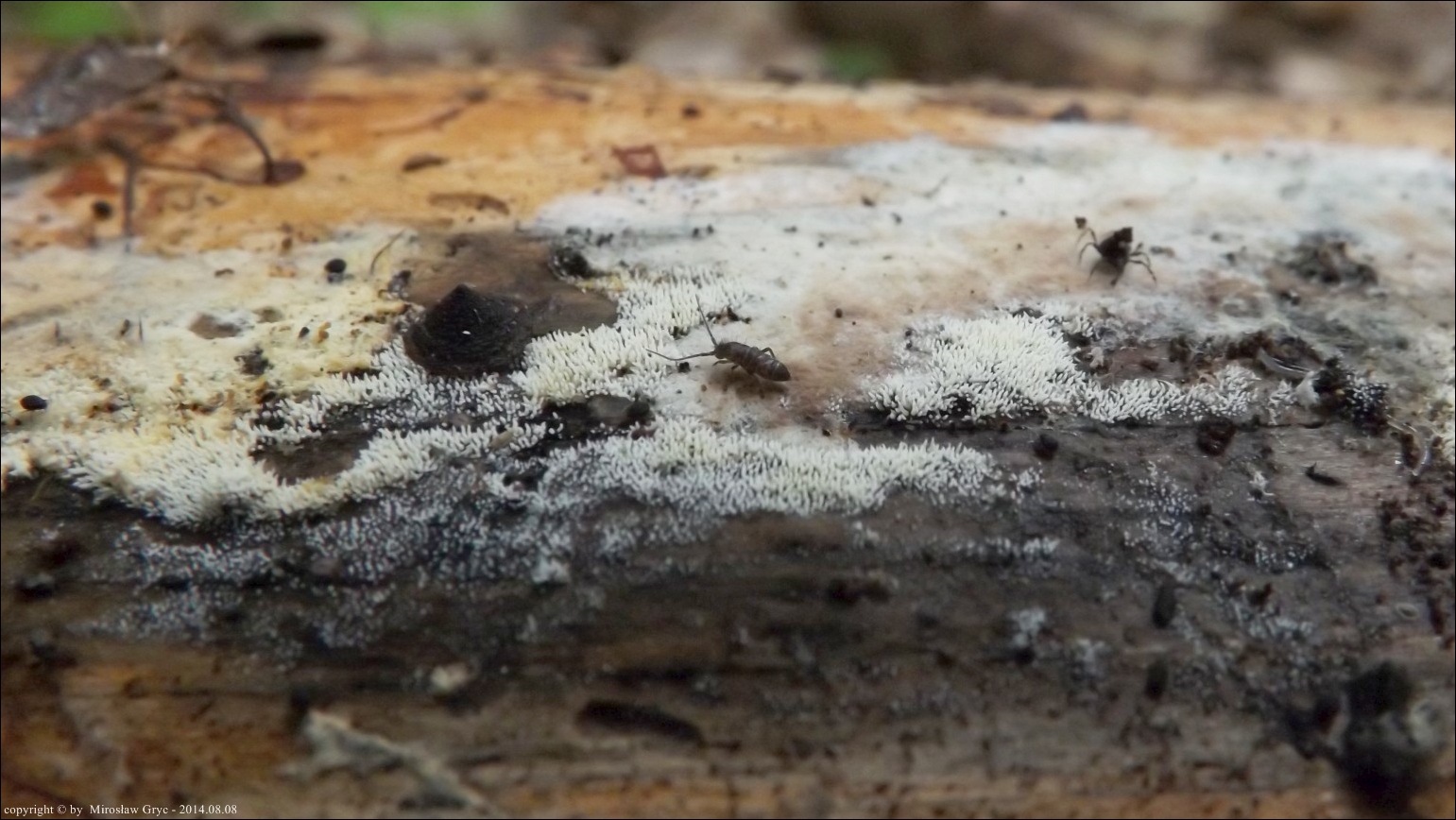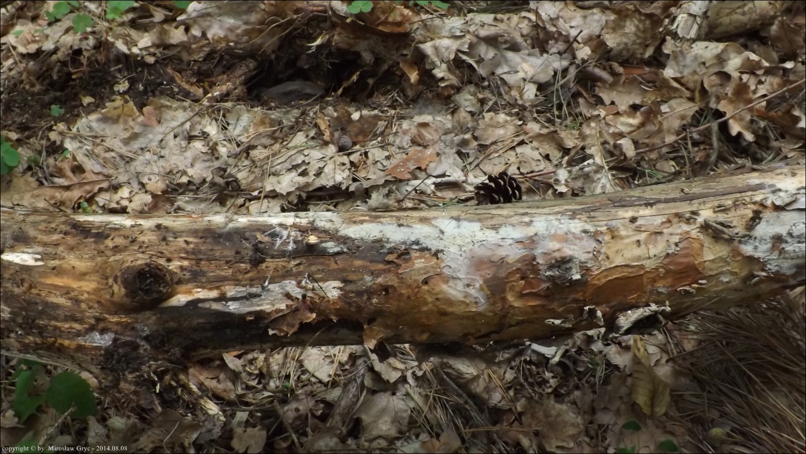 Substrat: Owocniki na dolnej stronie, na leżącym na ziemiu fragmencie pnia. Substart w stanie nieidentyfikowalnym po makro.