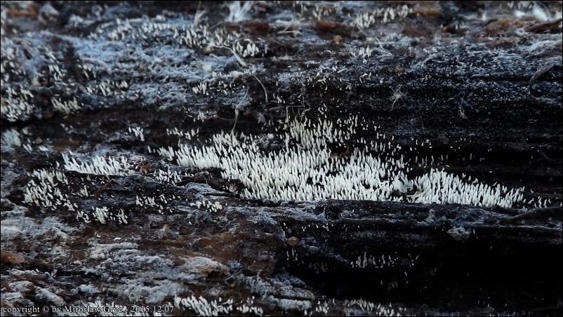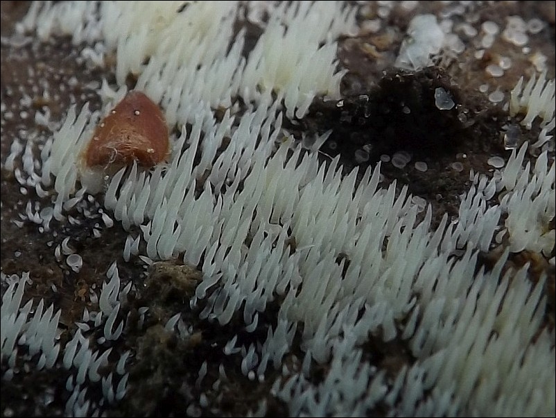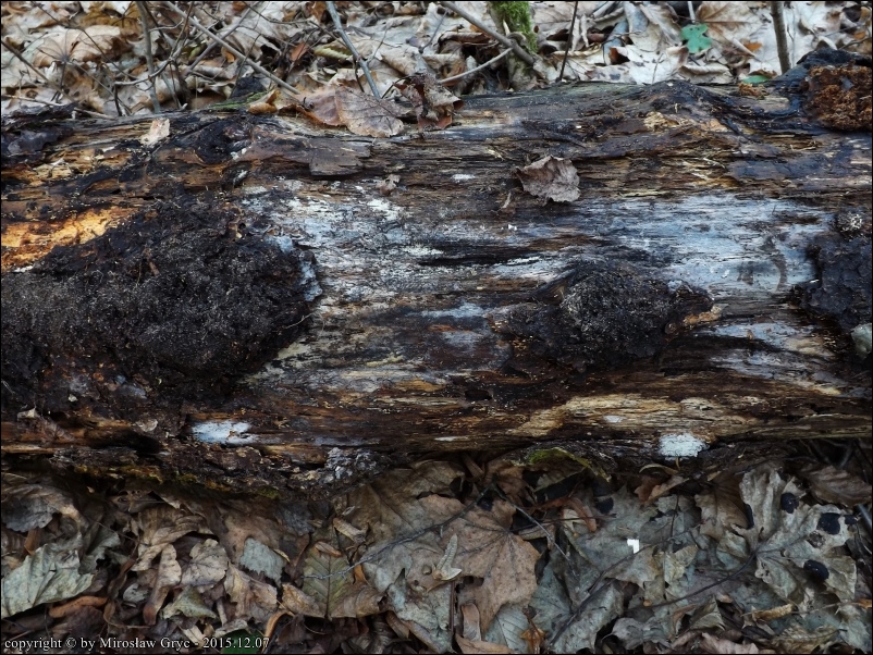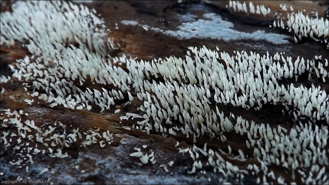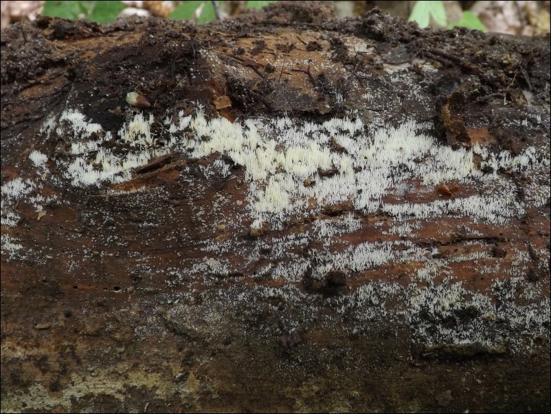 Substrat: Owocniki na dolnej stronie drąga leżącego na ziemi (prawdopodobnie sonowy).