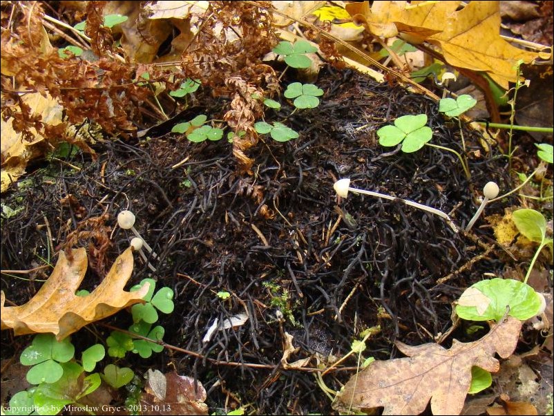 Substrat: Kilka owocników na kłączu paproci.