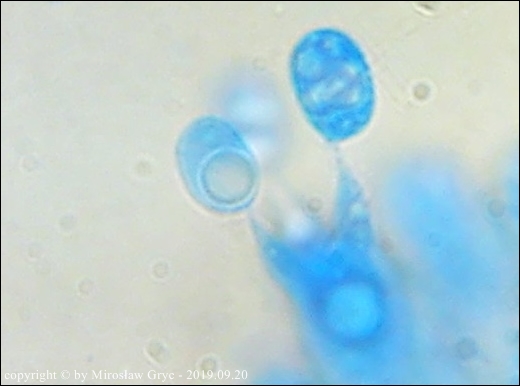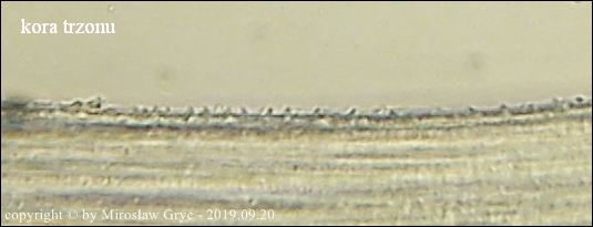 Substrat: Dwa owocniki na leżącym wśród mchów, zbutwiałym drewnie. Owocniki mikroskopował W. Czerniawski.
