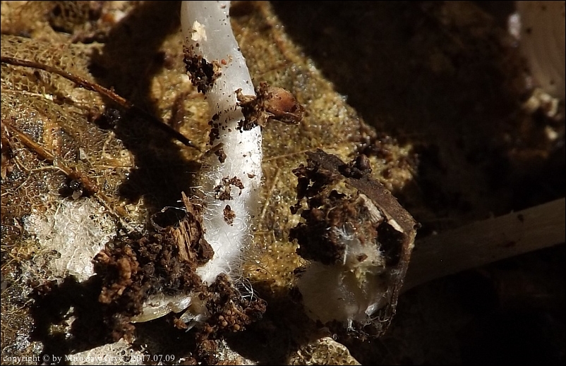 Substrat: Owocniki na praktycznie całkowicie już zbutwiałym pniu powalonej wierzby (Salix sp.). Stanowisko trwałe od kilku lat.