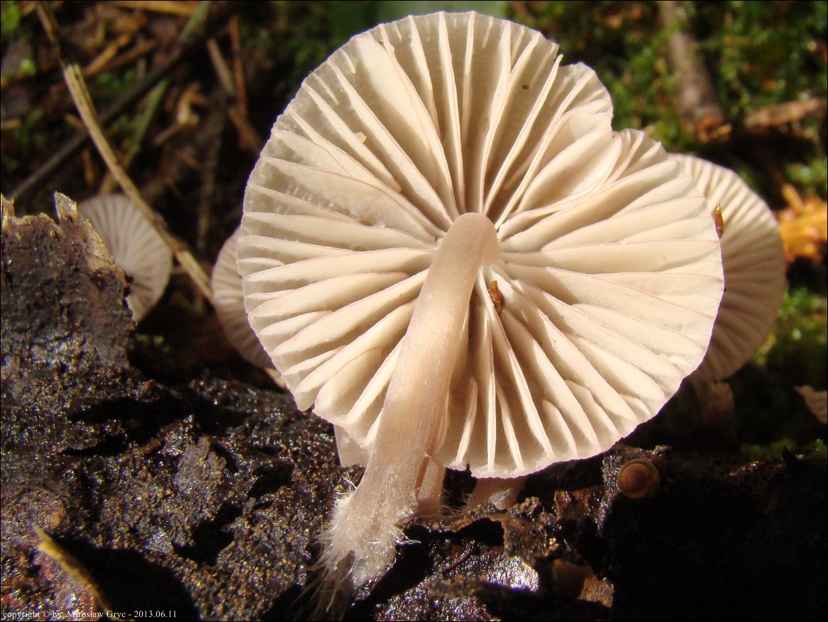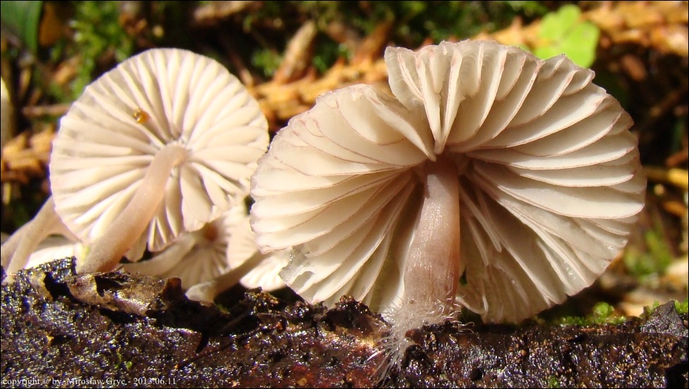 Substrat: Grupka owocników na pozostałym po wyrębie klocu drewna liściastego, leżącym na ziemi. Owocniki mikroskopował W. Czerniawski.