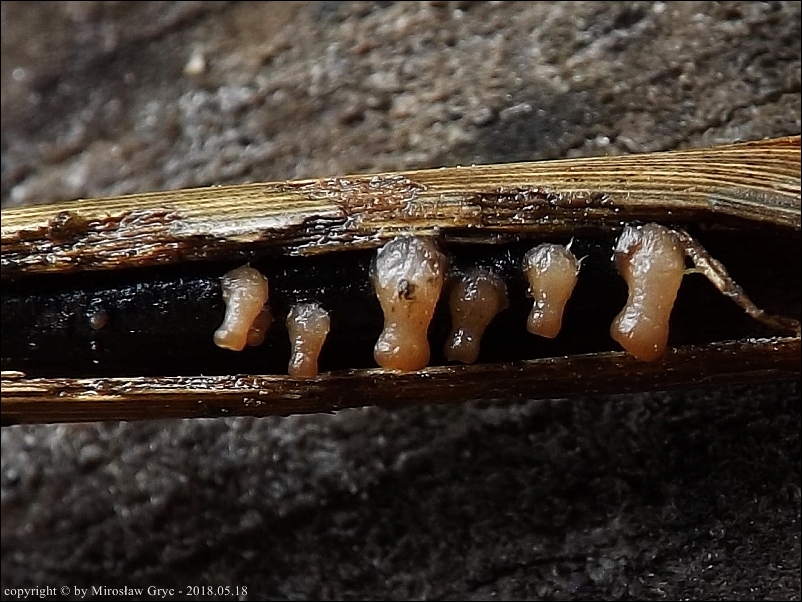 Substrat: Owocniki masowo na ubiegłorocznych pędach sitowia leśnego (Scirpus sylvaticus) . Teren podmokły, bagnisty, nieraz zalewany.