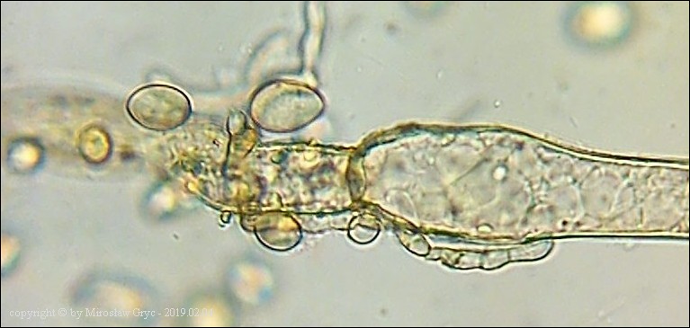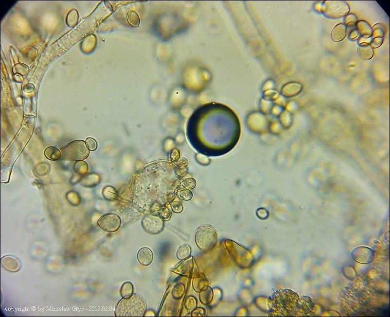 Substrat: Owocniki na pniu martwego pędu liściastego, prawdopodobnie czeremchy.