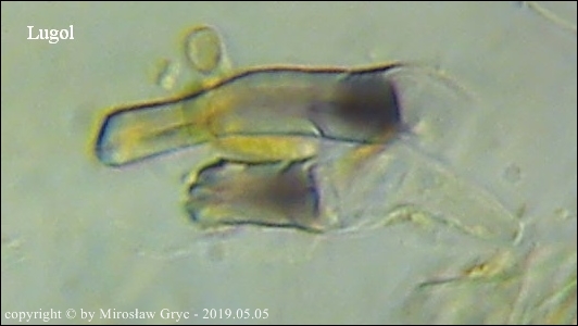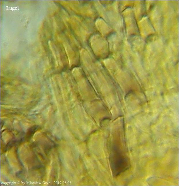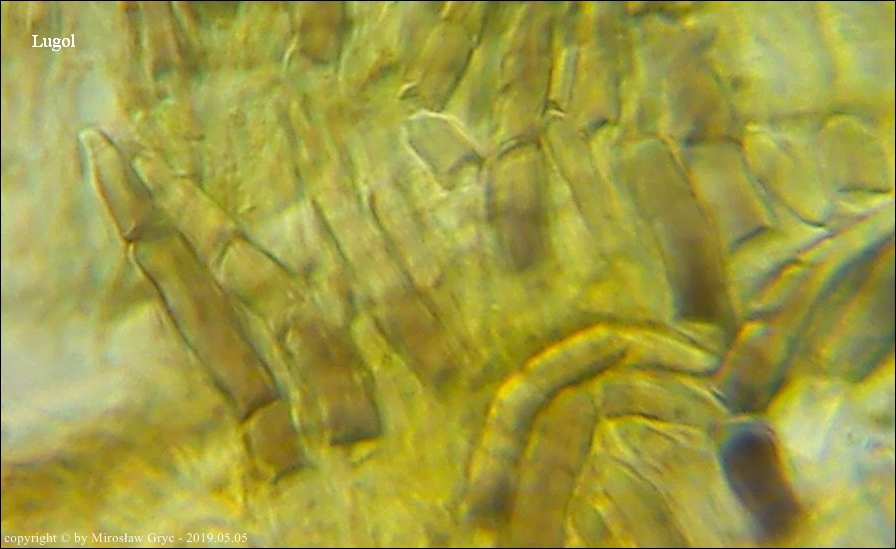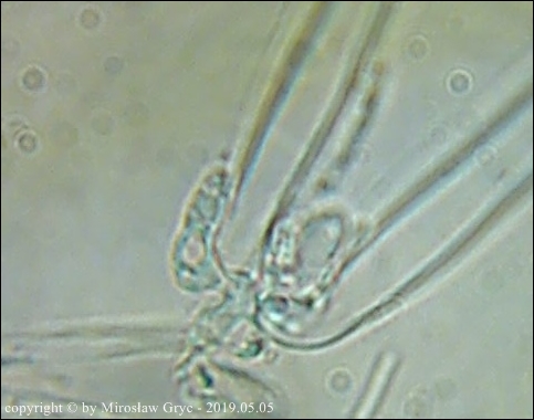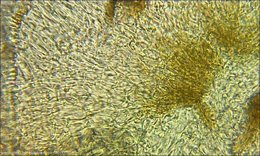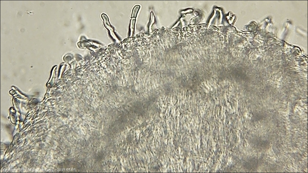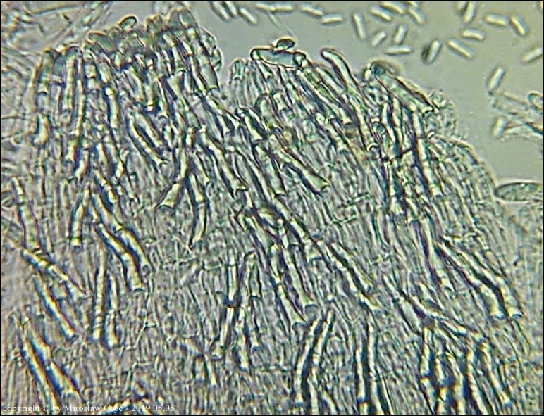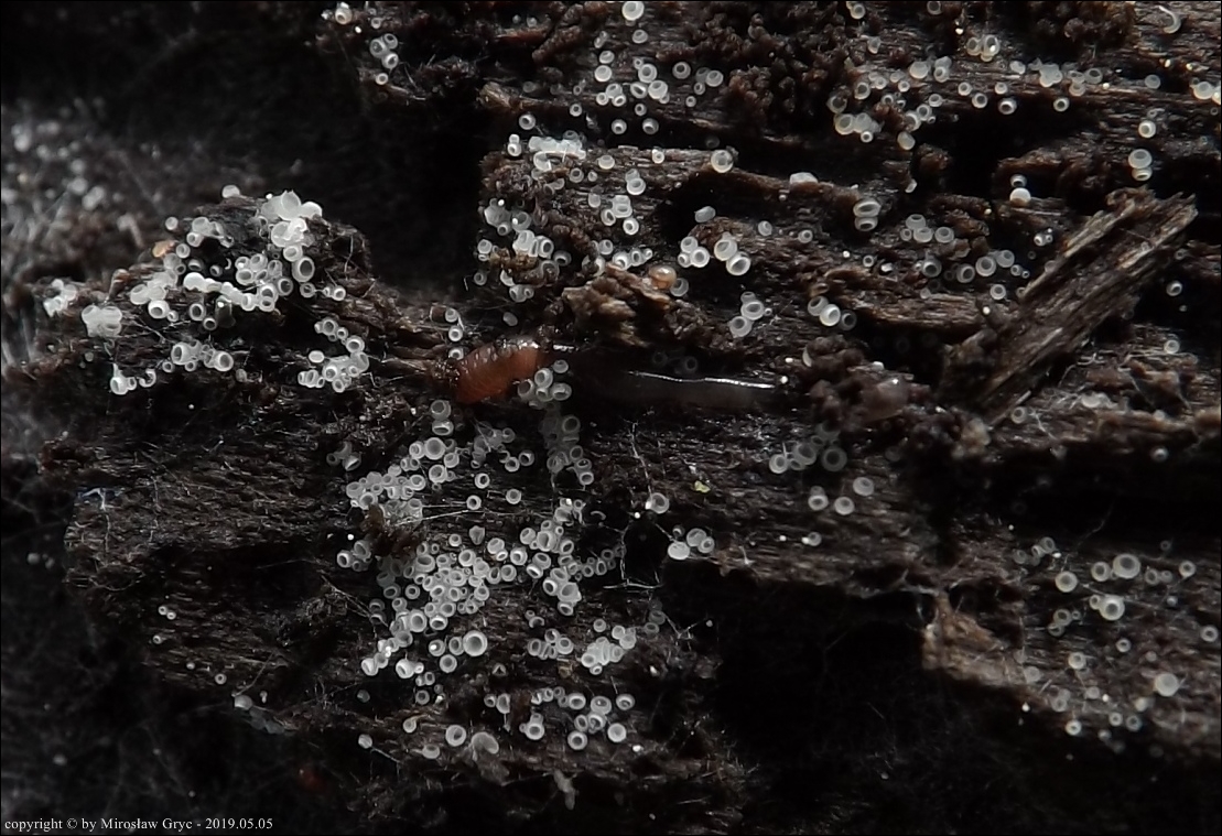 Substrat: Owocniki na dolnej stronie drewna leżacego na błotnistej ziemi.