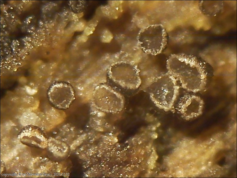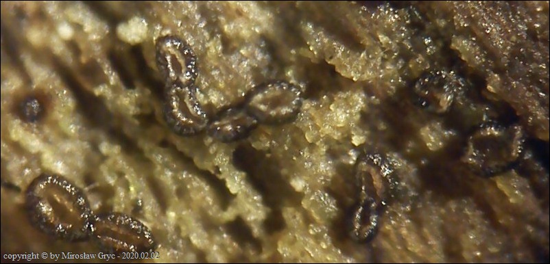 Substrat: Owocniki na drewnie topoli (Populus sp.) leżącej na ziemi.