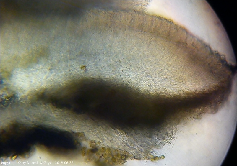 Ponieważ gatunek nie pasuje cechami do żadnego znanego, H-O Baral umieścił go tymczasowo w folderze: janthina aff. angiosperm wood (sp. 1) jako Ombrophila cf. janthina, nr. katalogowy HB 3256.Galeria zdjęć