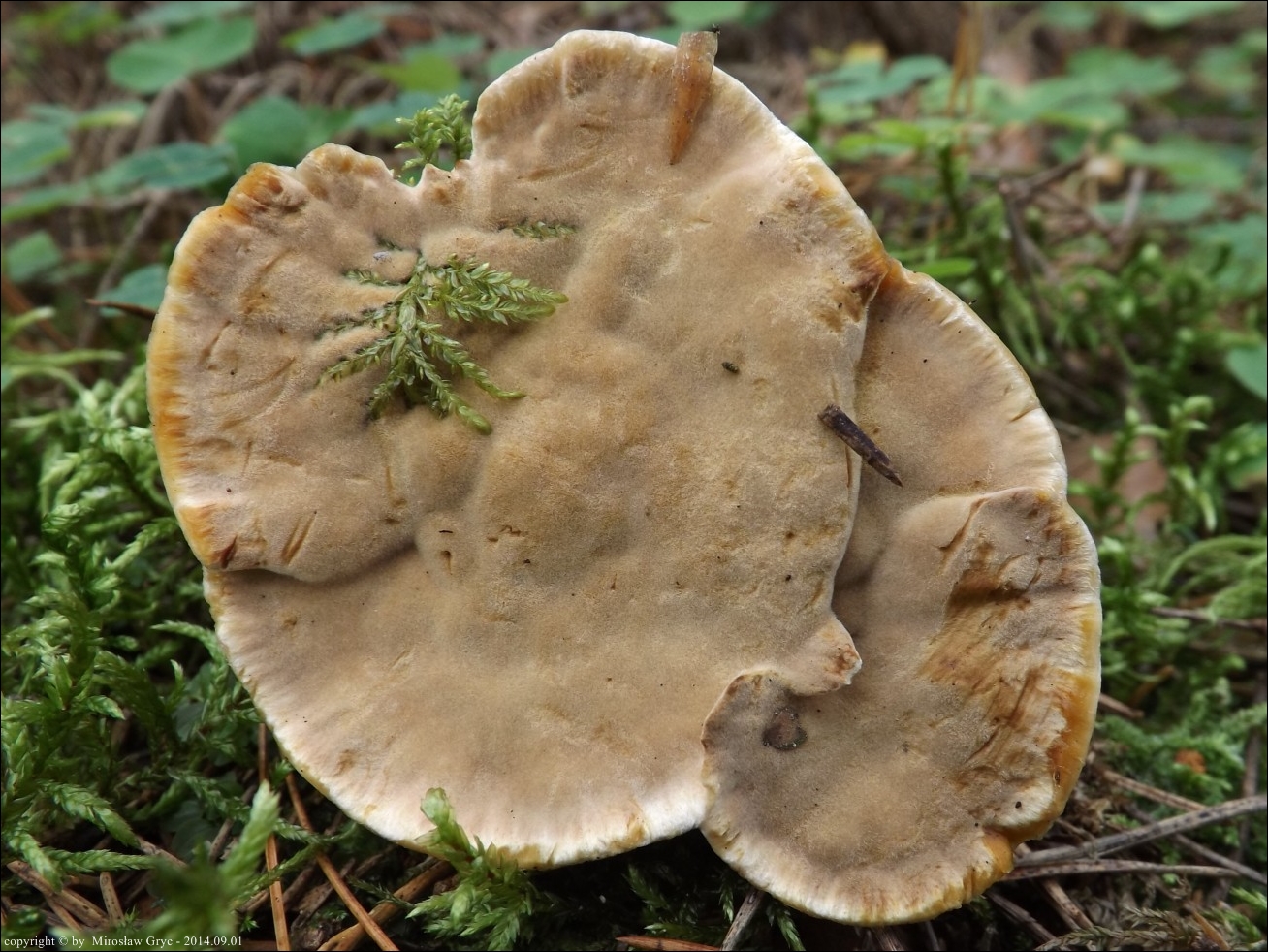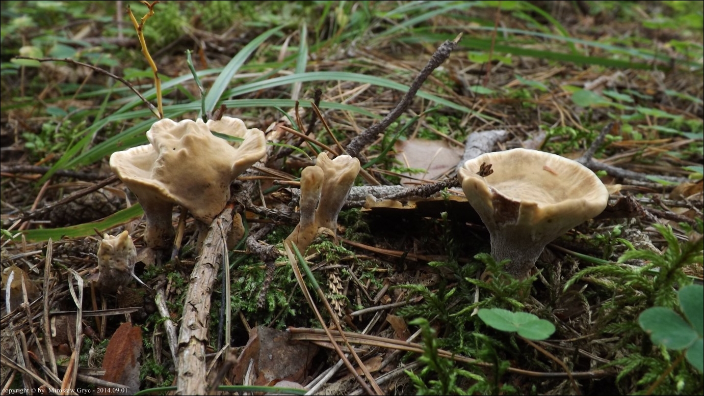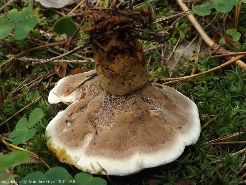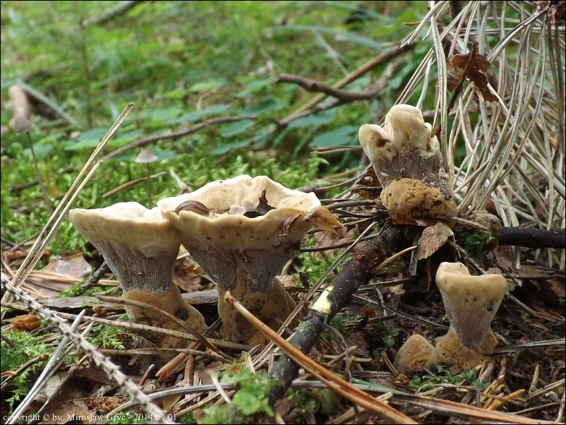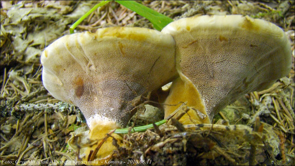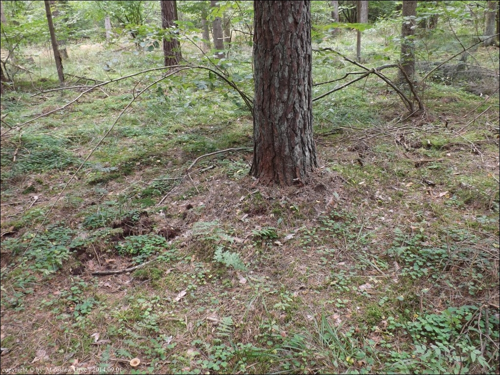 Substrat: Bór sosnowy z niewielka domieszką świerka. Około 30 owocników wokół starej sosny.