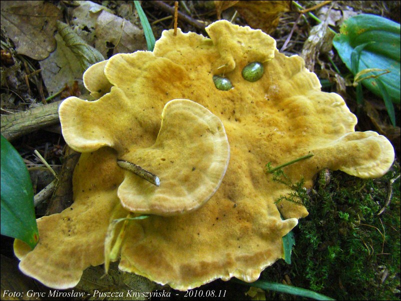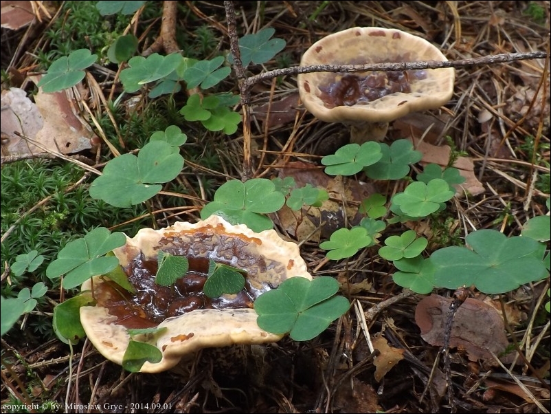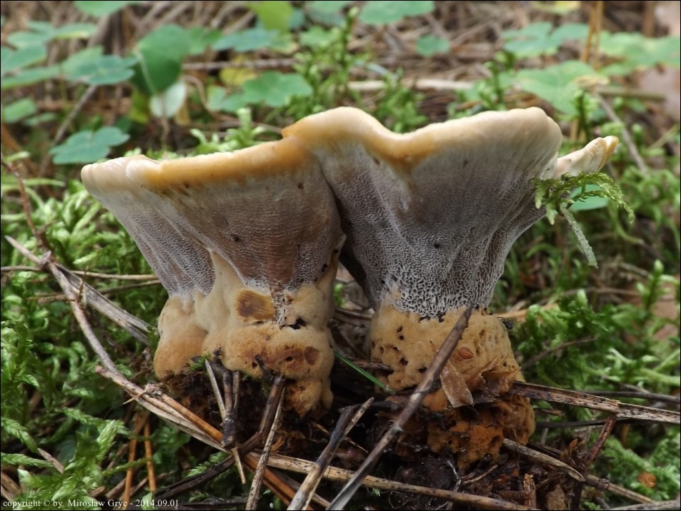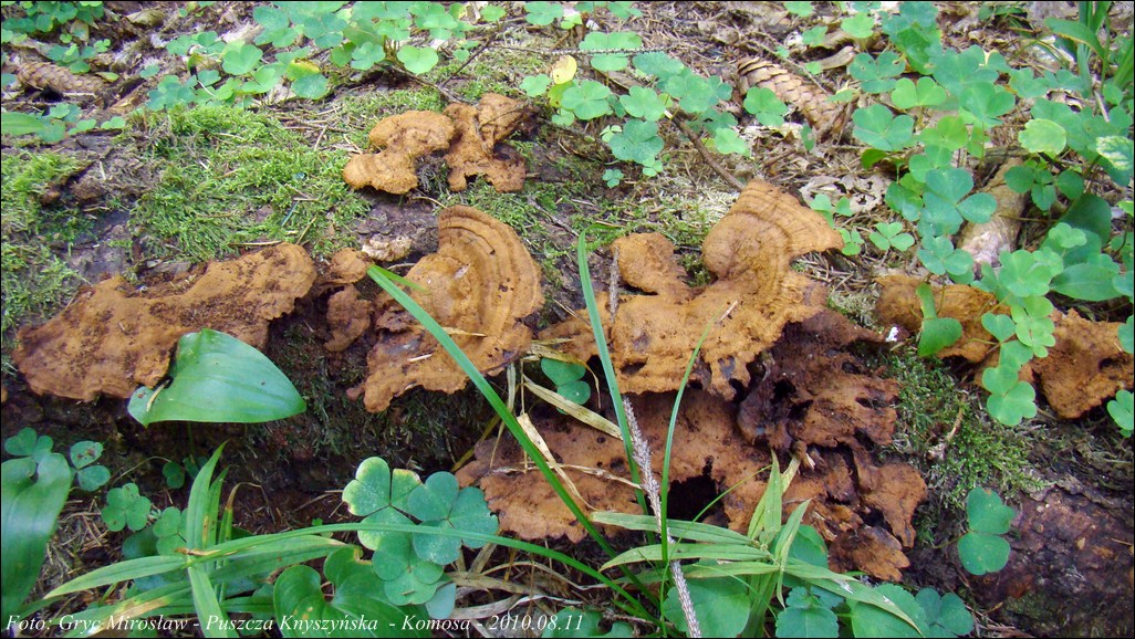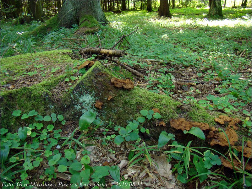 | ID: 144842 z dn. 2009.08.16 (ATPOL: GC-11) | Puszcza Knyszyńska, okolice leśniczówki Krasny Las.Stary las puszczański, drzewostan mieszany (przewaznie: świerk, grab, dąb). Na korzeniach świerka, cztery owocniki. Obok nich, nie dalej jak 50 m, następne 3 owocniki na korzeniach żywego świerka. Stanowisko ujęte w pracy zespołowej: Grzyby Puszczy Knyszyńskiej - Anna Kujawa, Błażej Gierczyk, Mirosław Gryc, Marek Wołkowycki - 2019 rok. | |