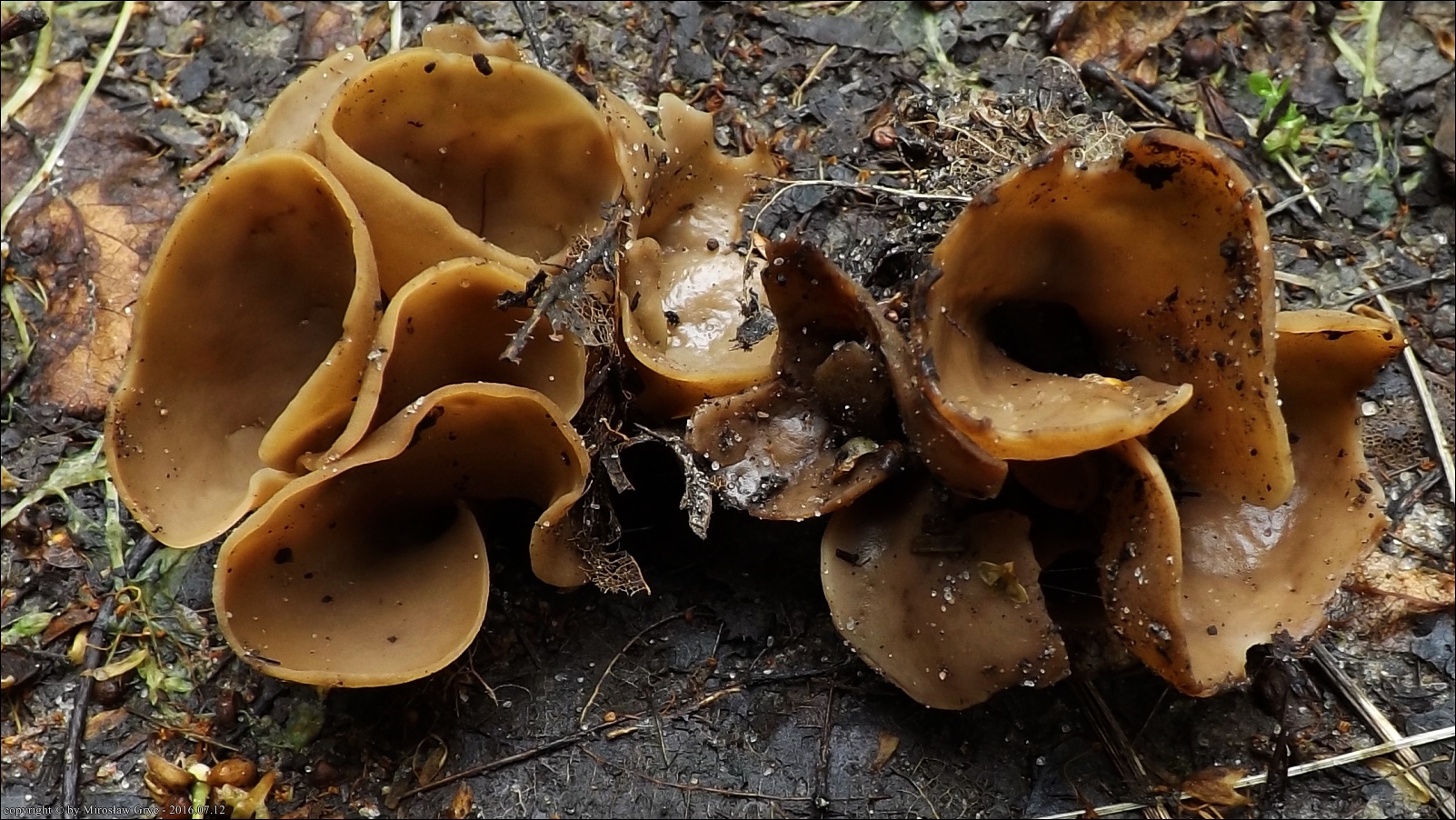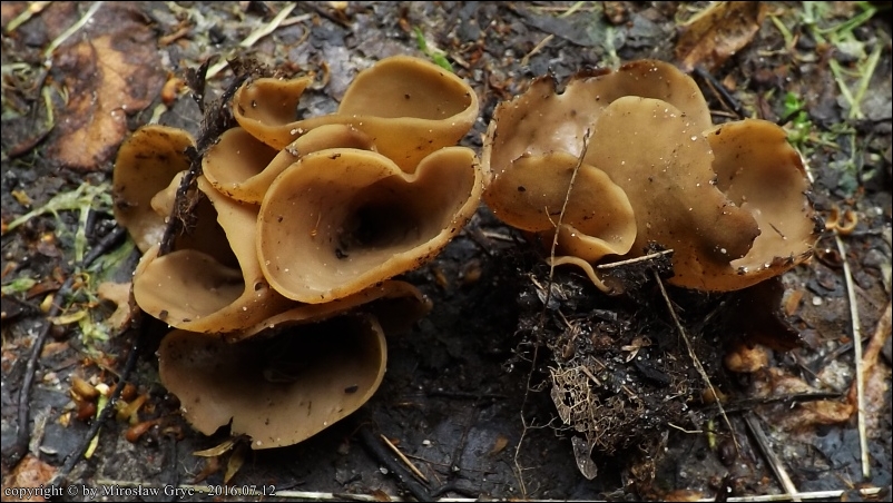 Substrat: Kilka owocników na mało uczęszczanej drodze leśnej, podłoże z dużą ilością resztek drewna.