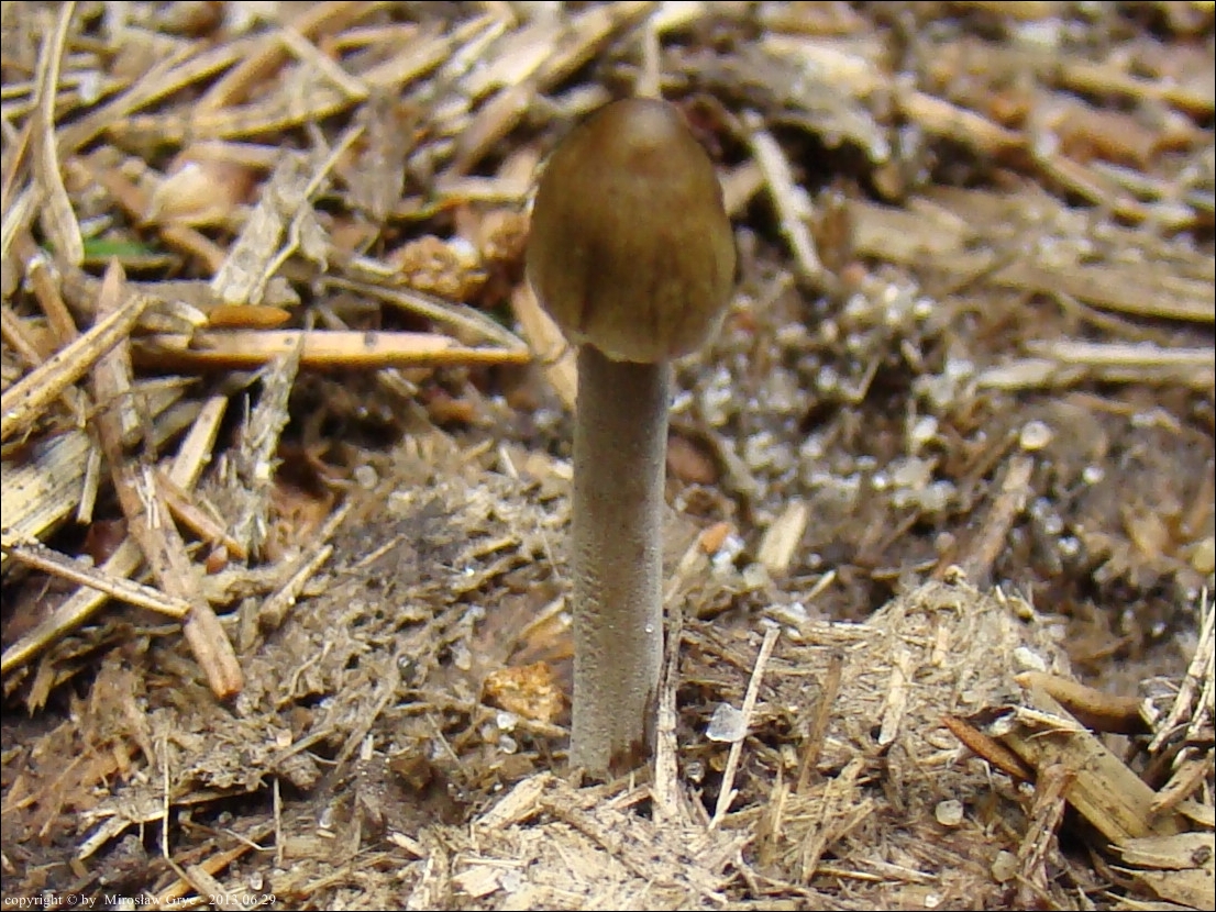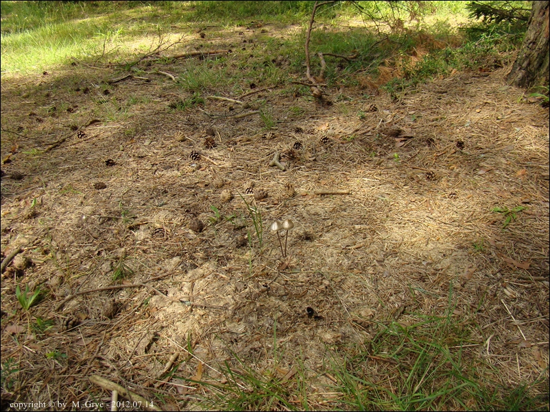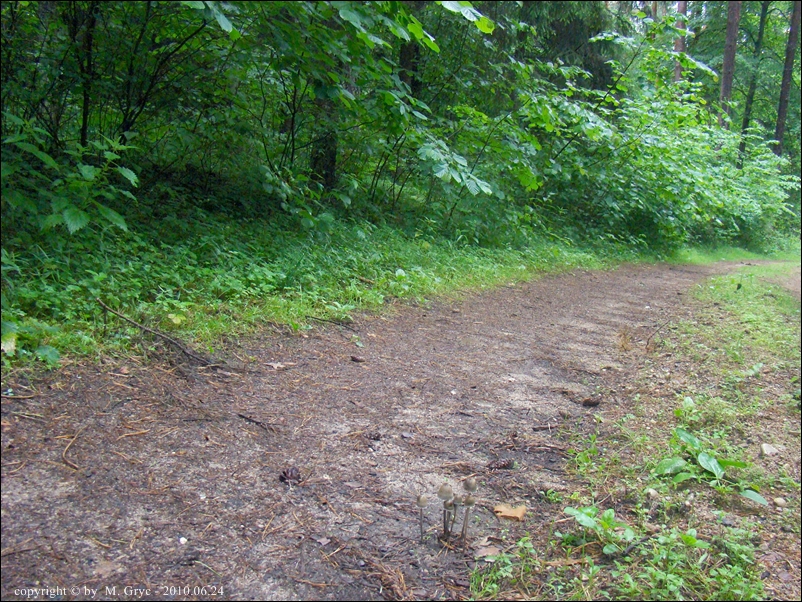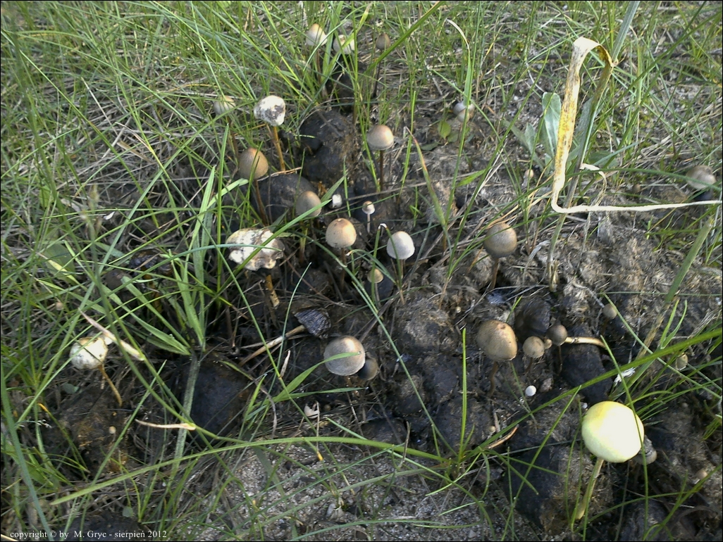Data: Znalezisko z dnia 2012.07.09 z lasu sosnowego w okolicy Ogrodniczek, rósł wespół z łysiczką łajnową na końskiej kupie, leżącej na drodze leśnej.