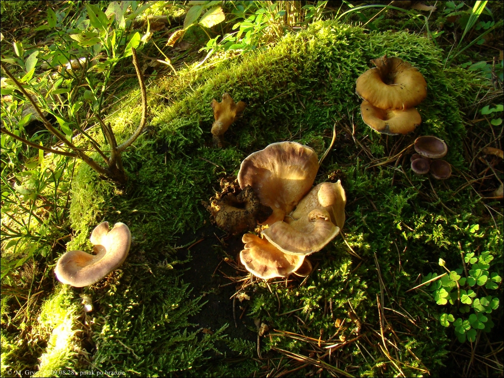 Substrat: Okolice miejscowości Ciasne (woj. podlaskie, gm. Supraśl). Grzyby rosły na pniu pozostałym po ściętej brzozie.