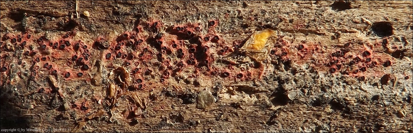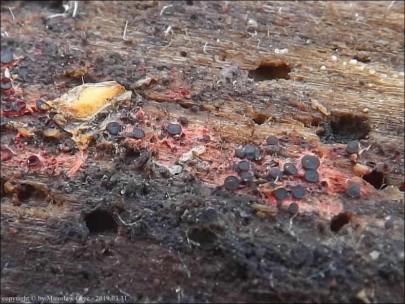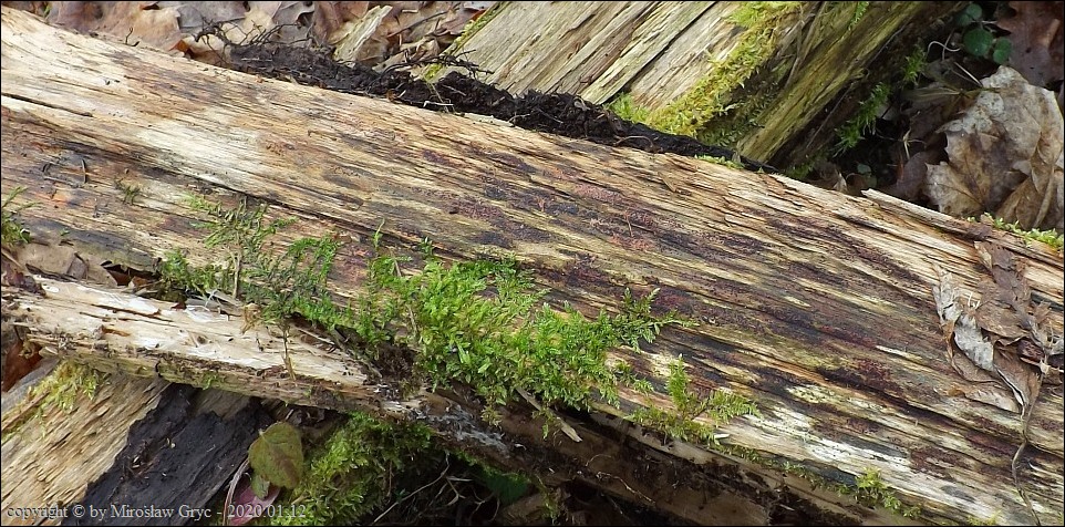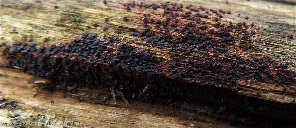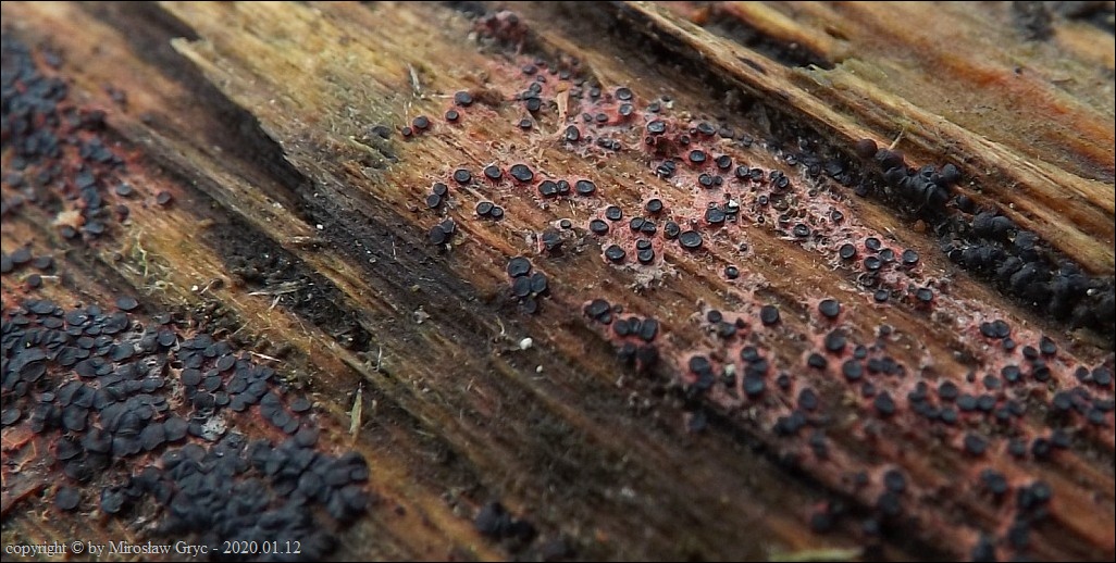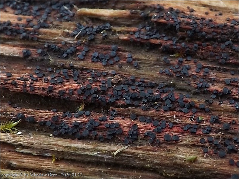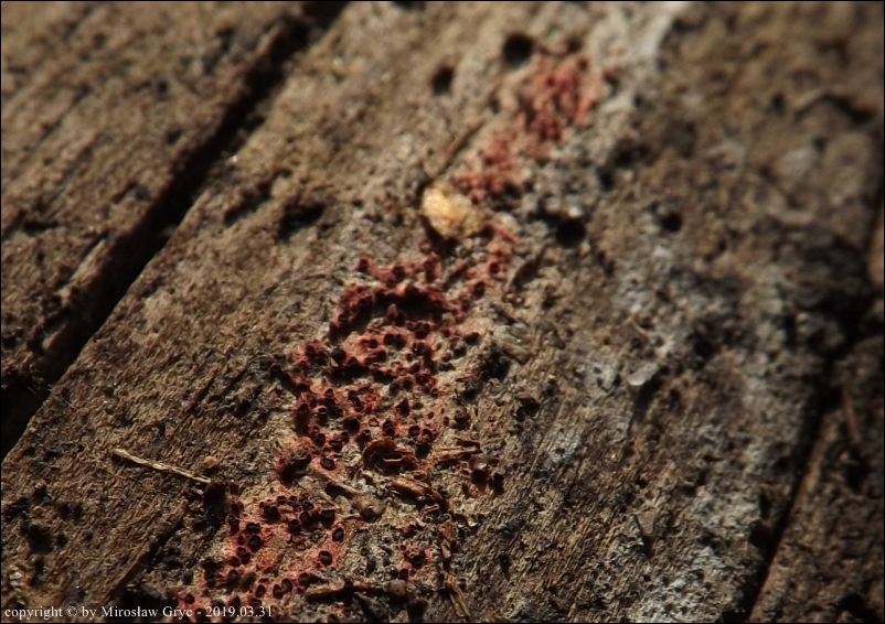 Substrat: Owocniki masowo na drewnie złamanej wierzby (Salix sp.) .