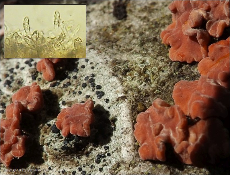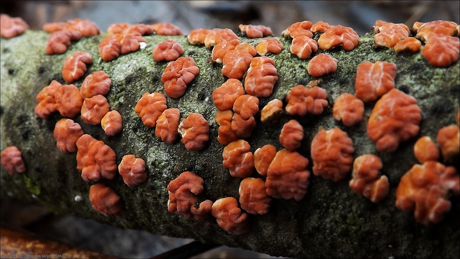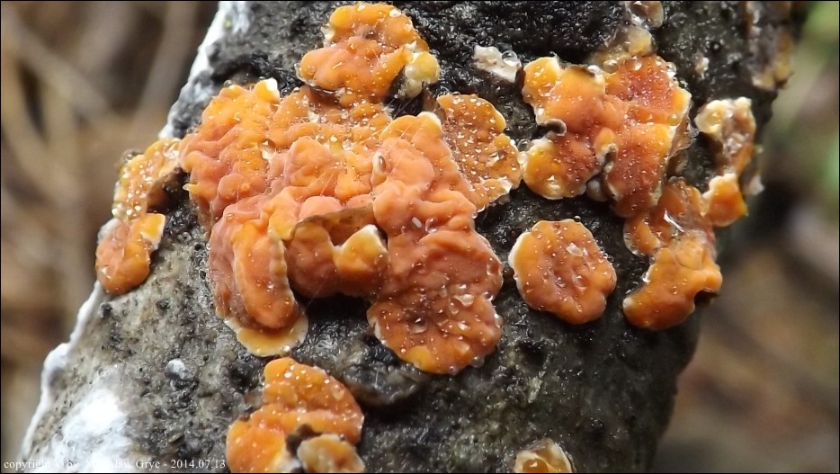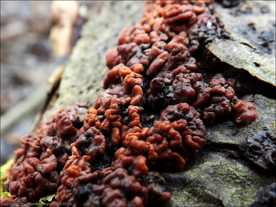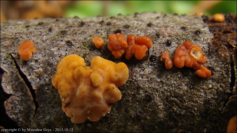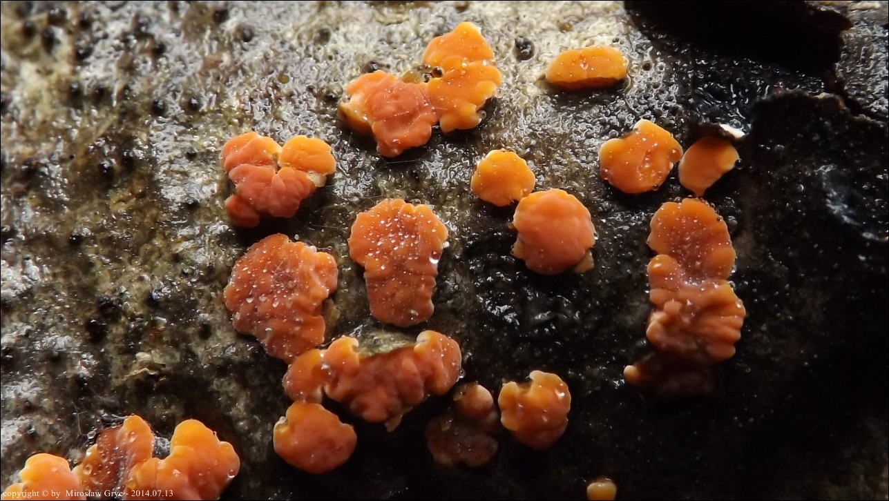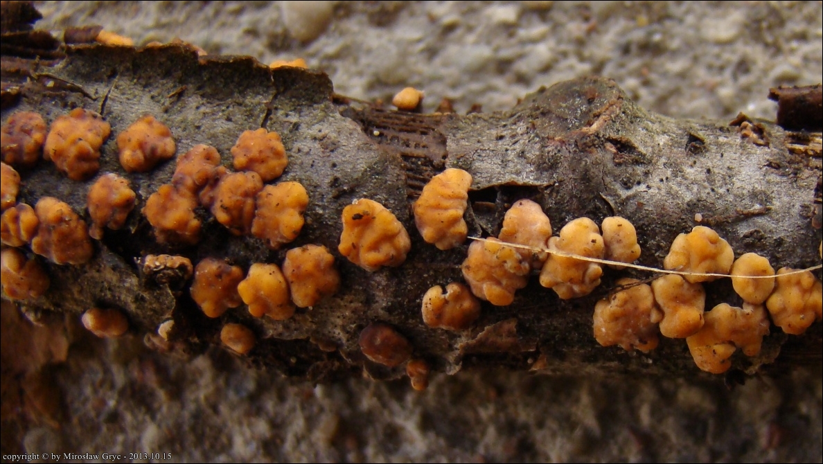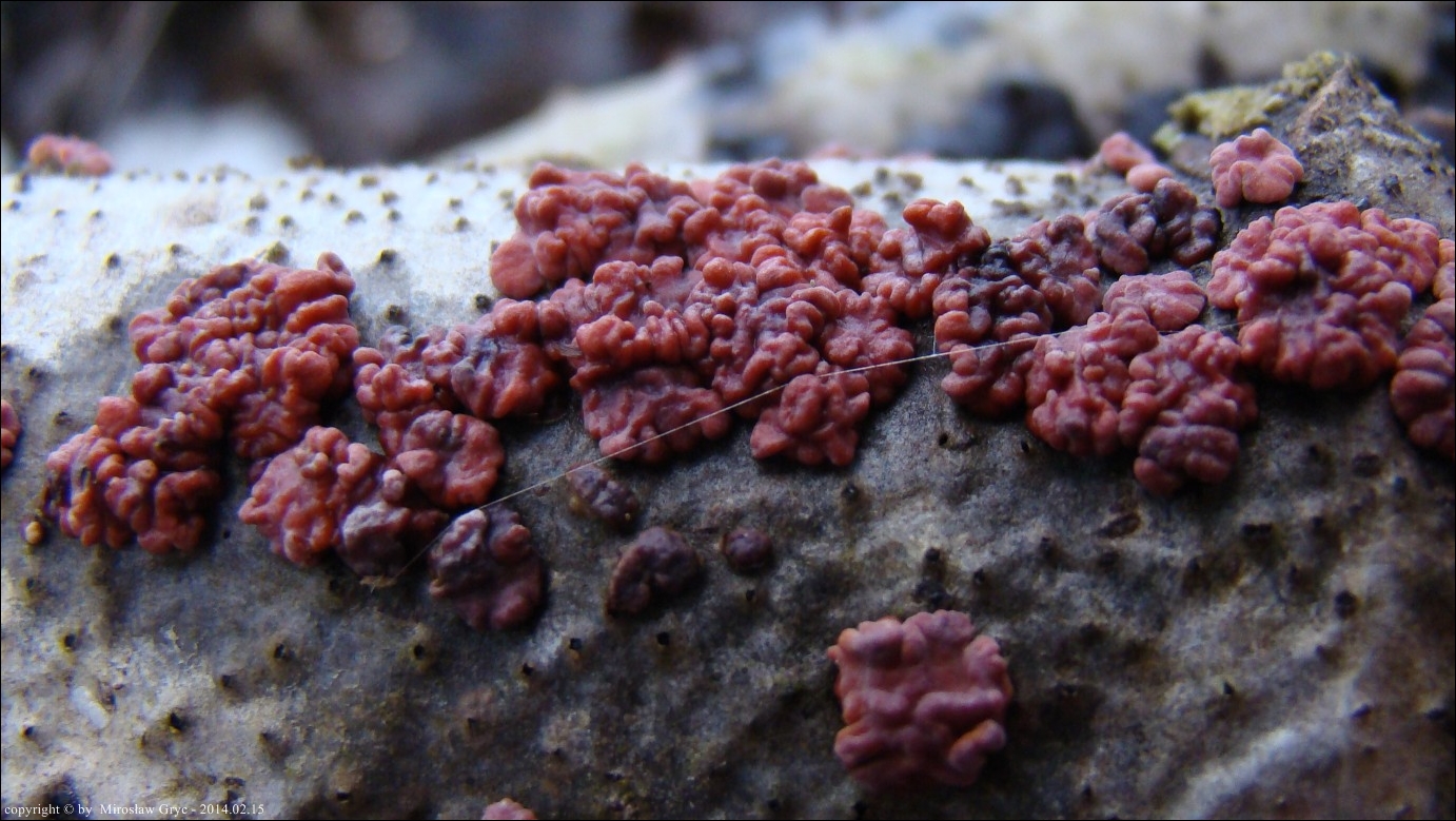 Dość częsty przypadek występowania obok siebie, na tym samym substracie dwóch gatunków: Peniophora rufa oraz Peniophora polygonia .