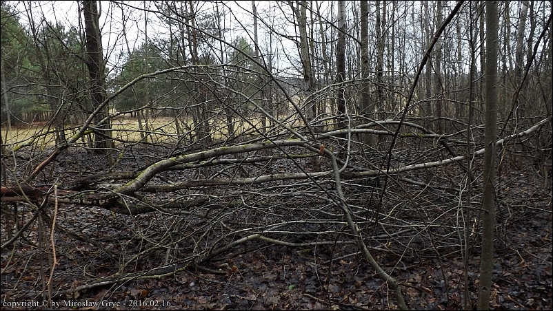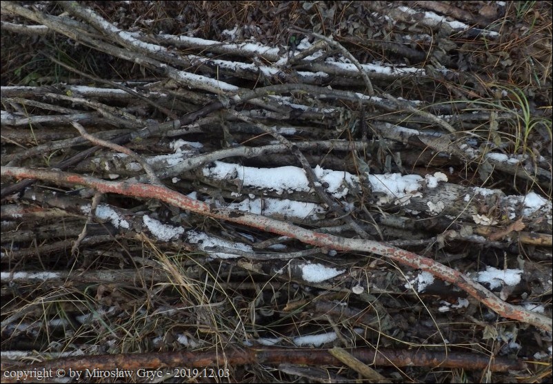 Substrat: Śródpolne zadrzewienie mieszane; gałęzie topoli pozostałe po wycince.