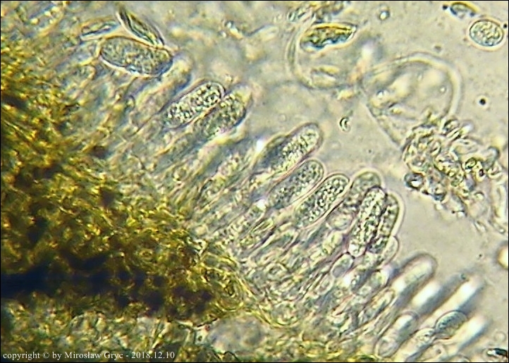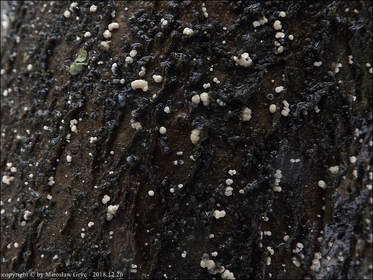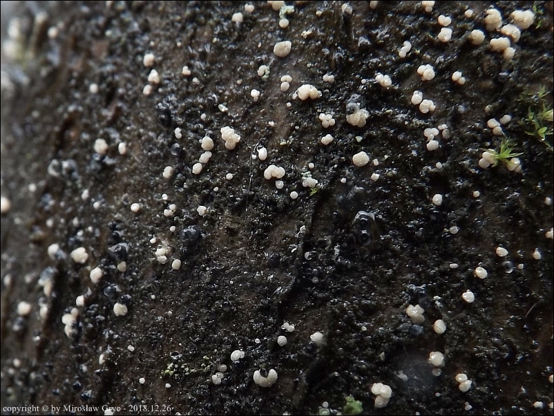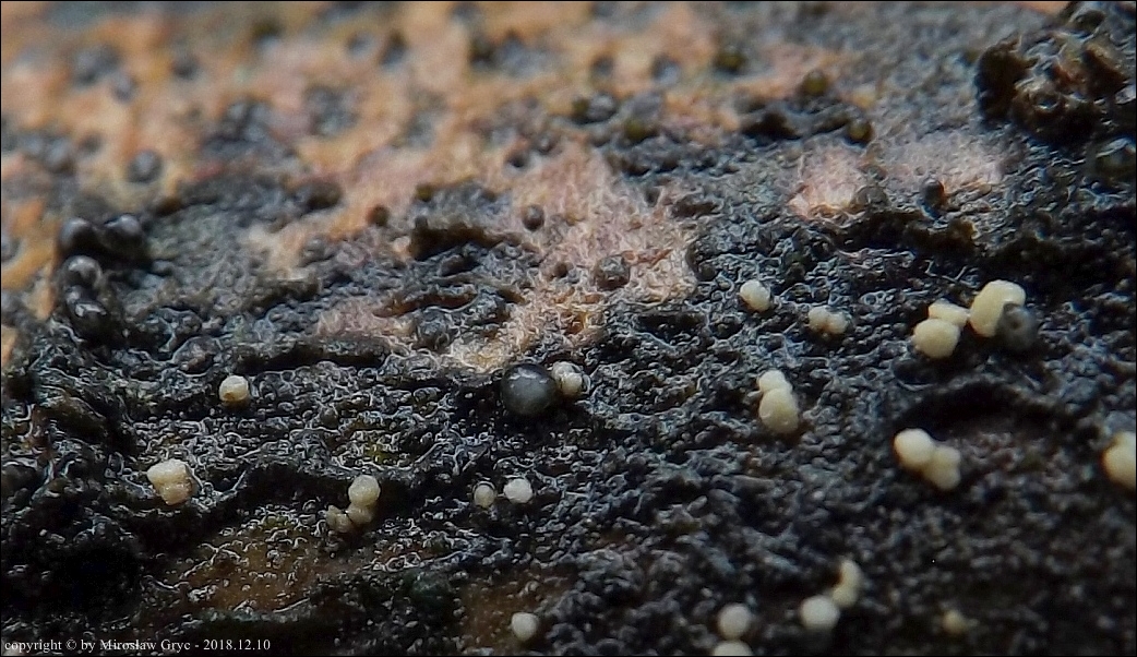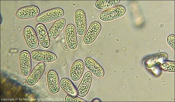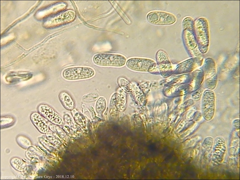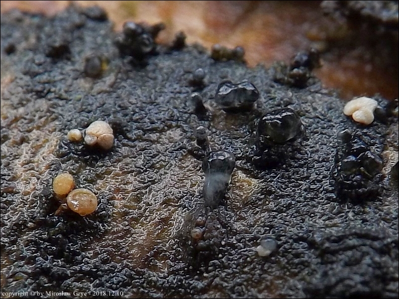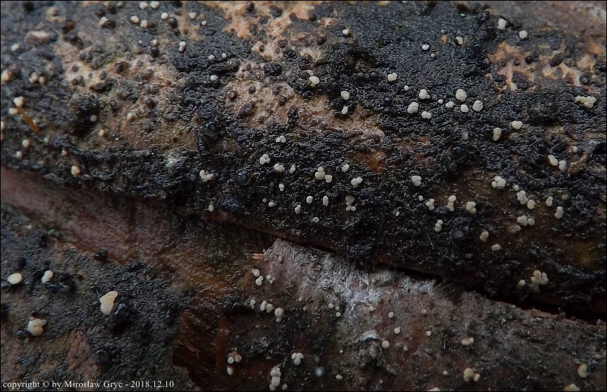 Substrat: Owocniki na martwym pędzie leszczyny (Corylus avellana) .