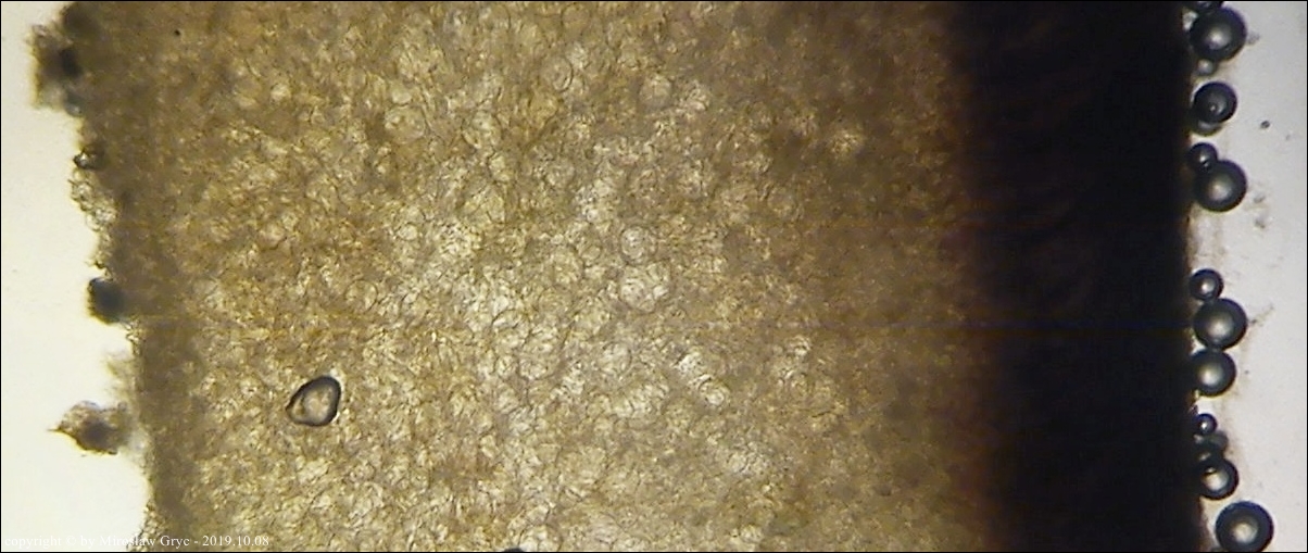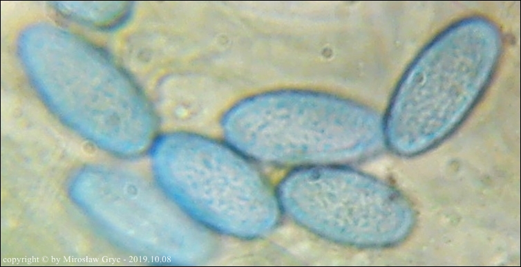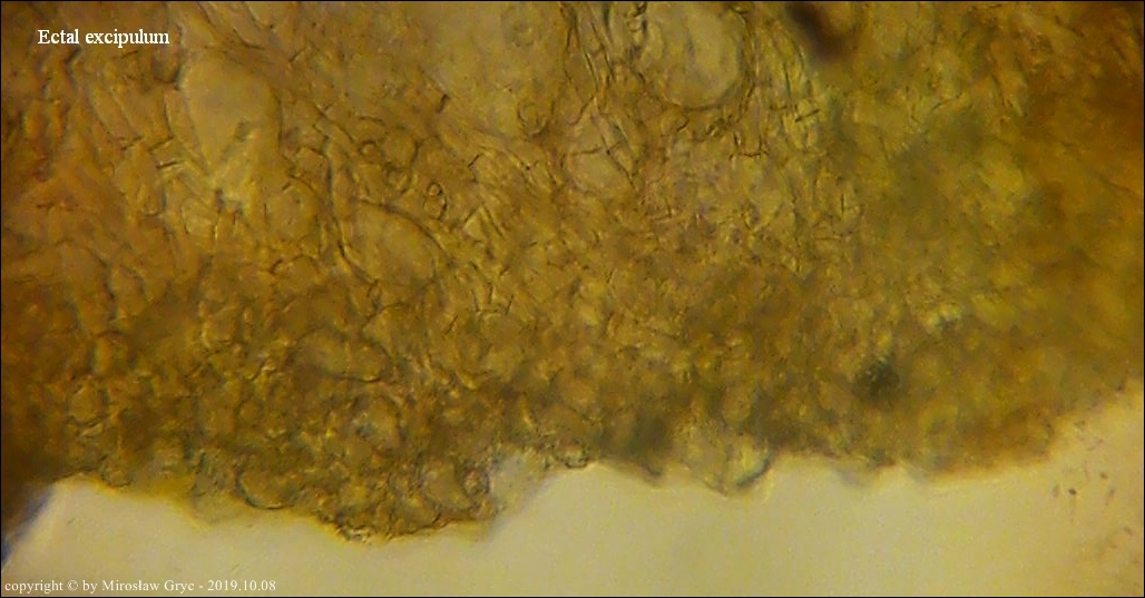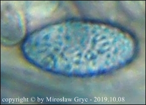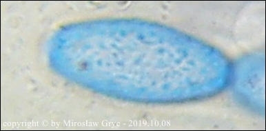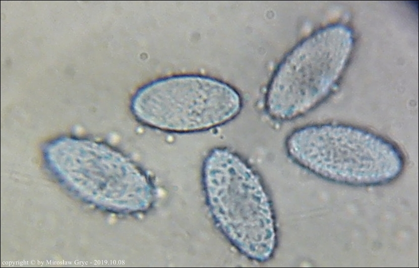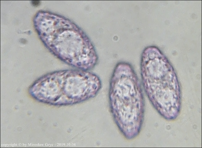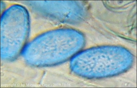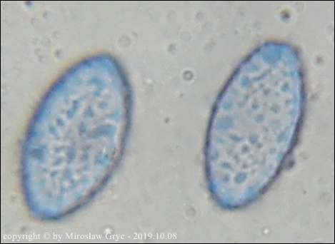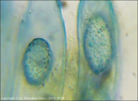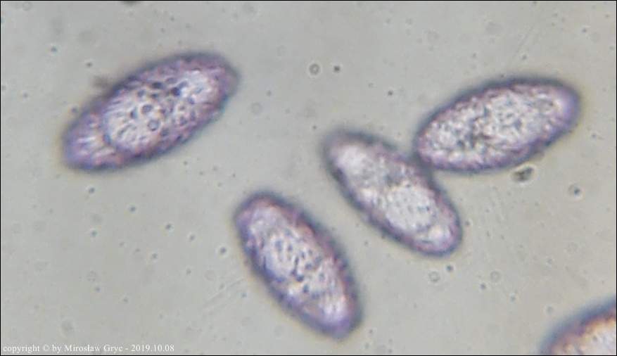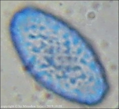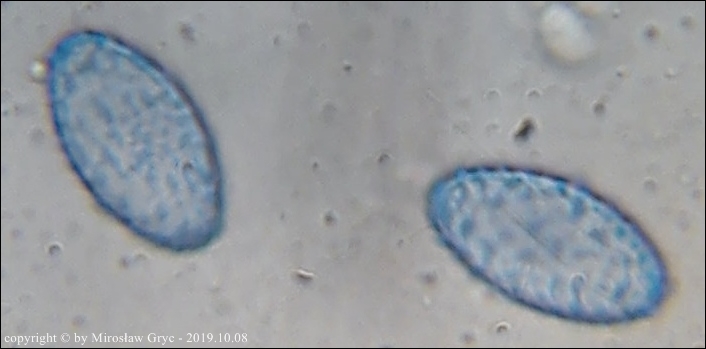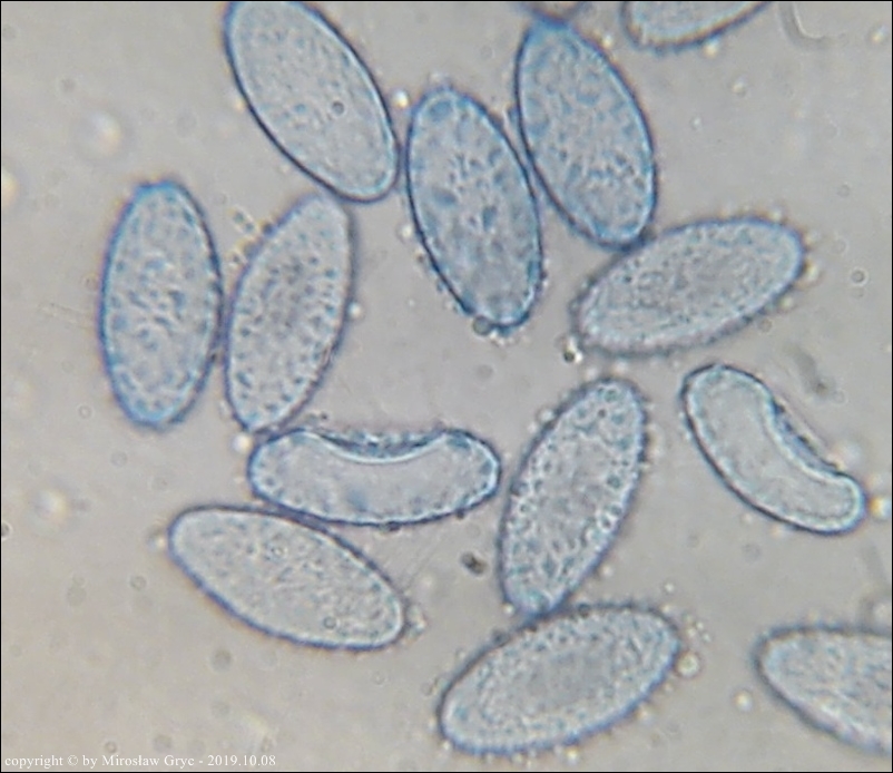 W sumie mógłbym uznać te dwie kolekcje za Peziza limnaea. Do tego gatunku pasują w zasadzie prawie wszystkie cechy mikroskopowe. Moje wątpliwości budzi jednak bardzo drobna ornamentacja na zarodnikach w większości w postaci niskich brodawek owalnych oraz bardzo krótkich grzbietów a nie tak jak powinno być u P. limnaea podłużnych w kształcie przecinka ... jak ktoś kiedyś bardzo trafnie zauważył, przypominające ślady po zadrapaniu pazurem.Siedlisko też odpowiednie dla P. limnaea: skarpa rowu melioracyjnego, gęsto porośnięta krzewami, przede wszystki wierzbą (Salix sp.).