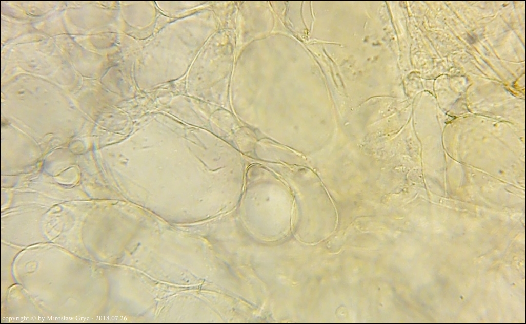 Taki zestaw cech mikroskopowych przypomina mi dość często u mnie spotykaną P. ampliata, jednak makro zupełnie do tego gatunku nie pasuje. Owocniki zbyt mięsiste oraz pokaźne brodawki na zewnetrznej stronie przemawiaja raczej za P.granularis.