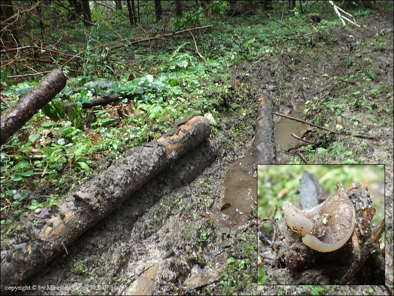 Substrat: Dwa owocniki, rosnące w odstępie około 5 m, na błotnistej koleinie, powstałej po ciężkim sprzęcie.