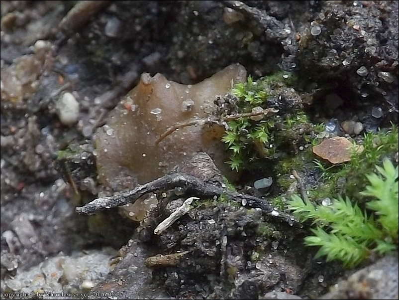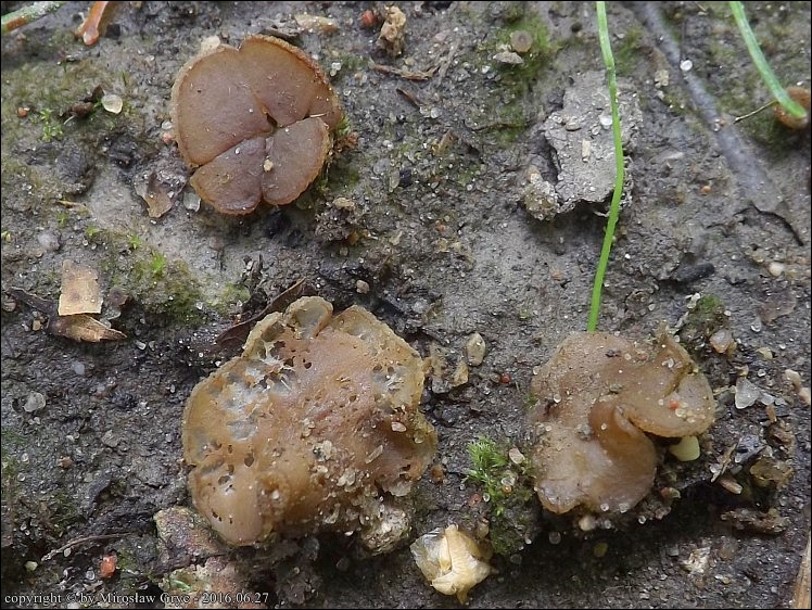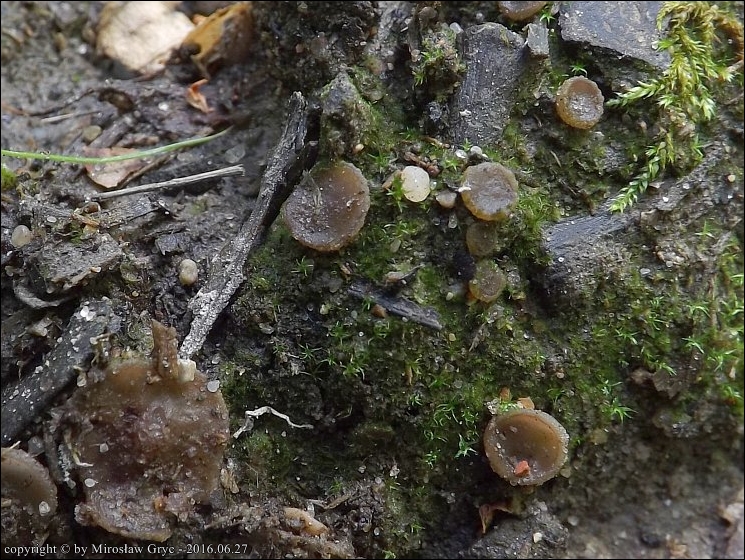 Substrat: Las mieszany. Owocniki na błotnistej koleinie drogi leśnej (bardzo prawdopodobne, że w podłożu znajdował się węgiel).