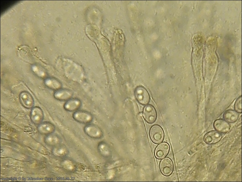 Zarodniki gładkie, z dwiema kroplami oleju: 13.06-15.45 X 8.06-8.70 µm.