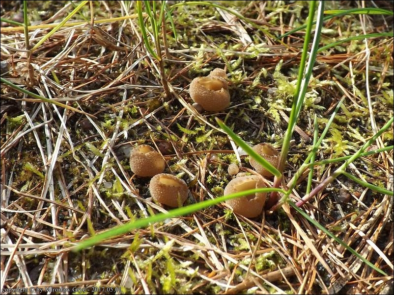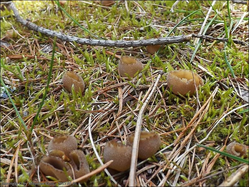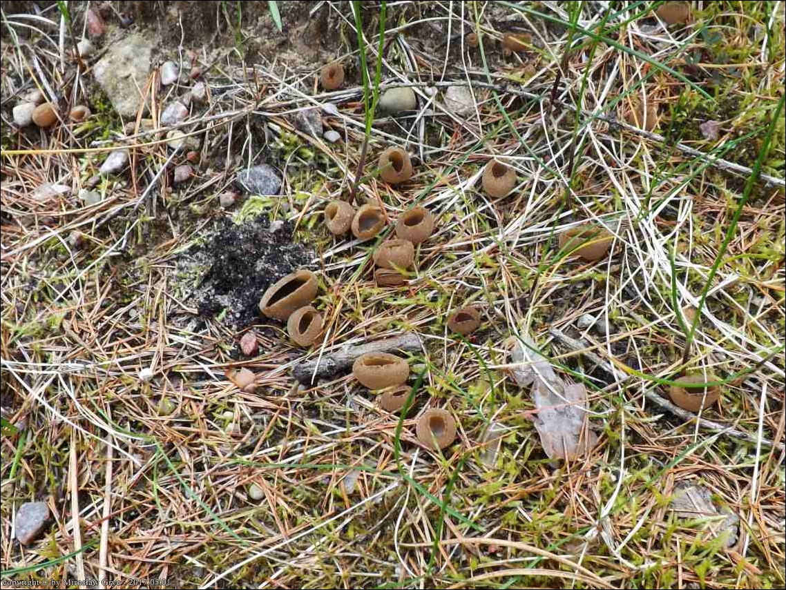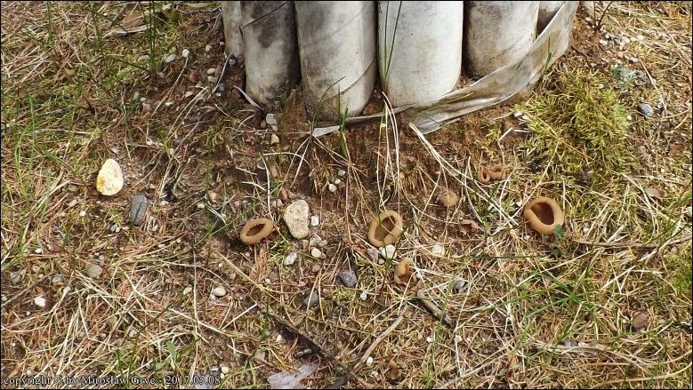 Owocniki na żwirowym podłożu wokół wypaleniska. Nie stwierdziłem wyrastania owocników na węglu.