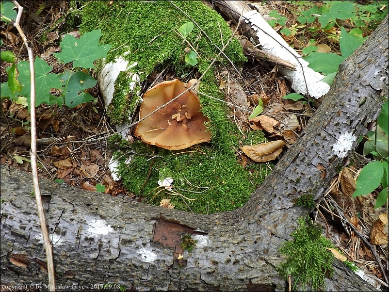 Substrat: Jeden owocnik, pokaźnych rozmiarów, na leżacym na ziemi pniu brzozy a w zasadzie na próchnie które z niego pozostało.