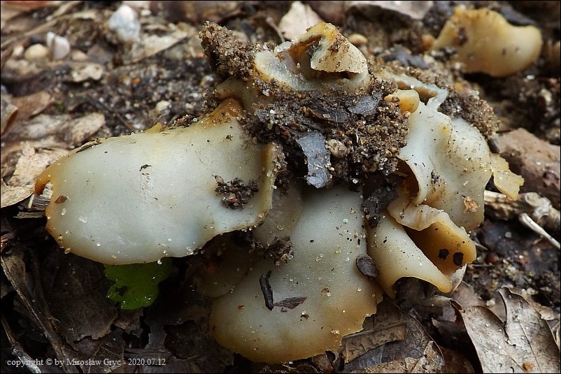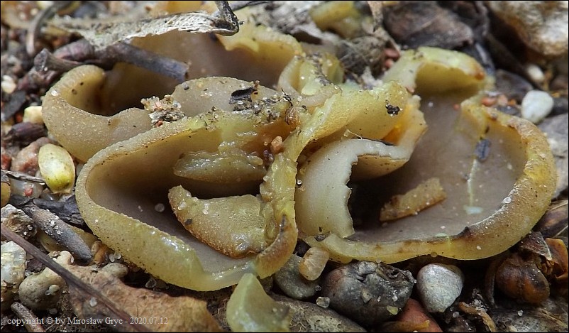 Substrat: Kilka owocników w zagłębieniu, na przydrożu, w miejscu nagromadzenia się resztek drewna.