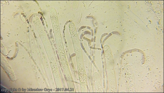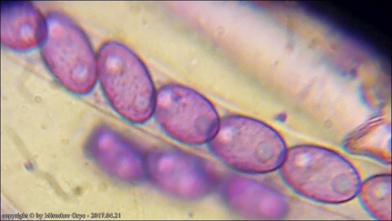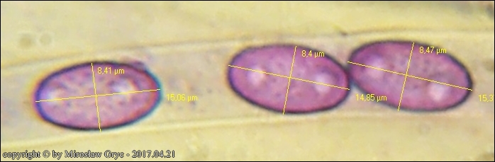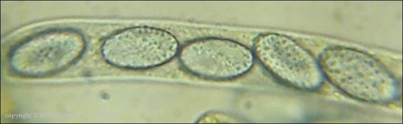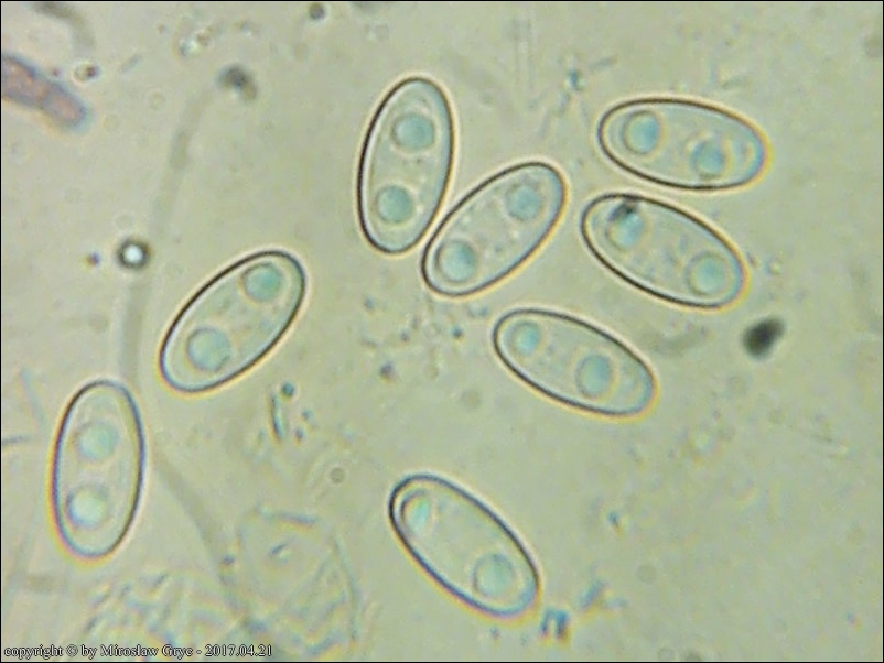 Gatunek ten ma gładkie zarodniki, z 2 kroplami ale tylko w okresie dojrzewania.