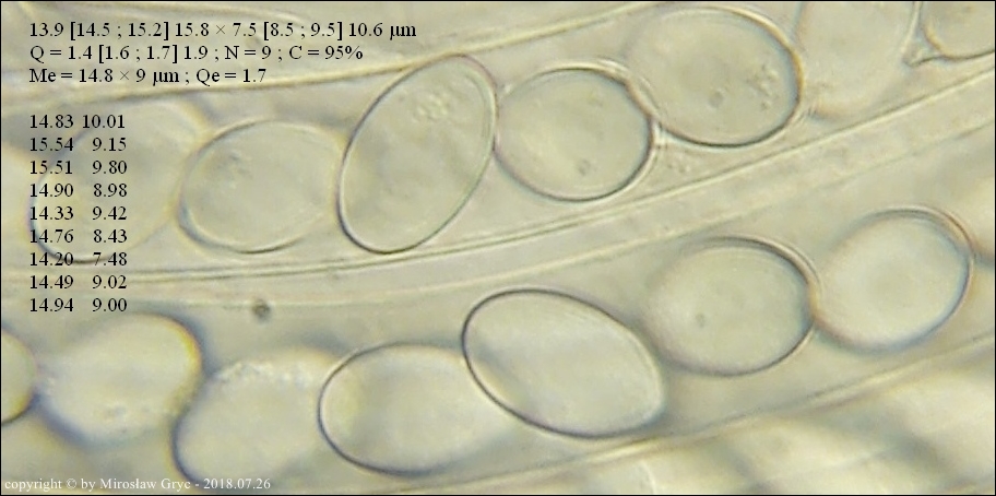 Owocnik jeszcze młody więc zarodniki nieco poniżej normy a parafizy tylko częściowo rozdęte.