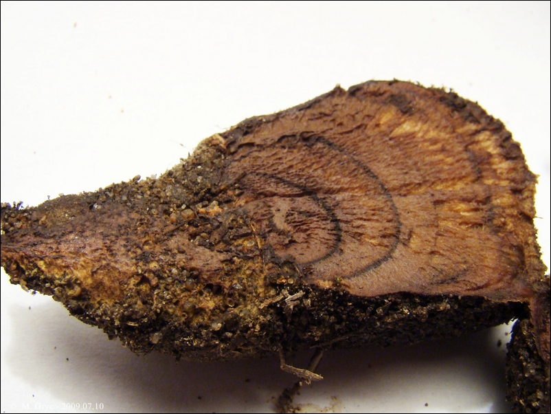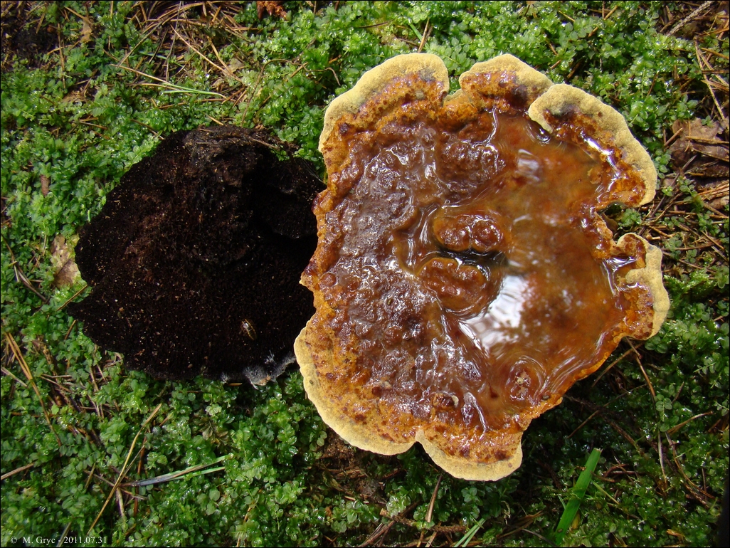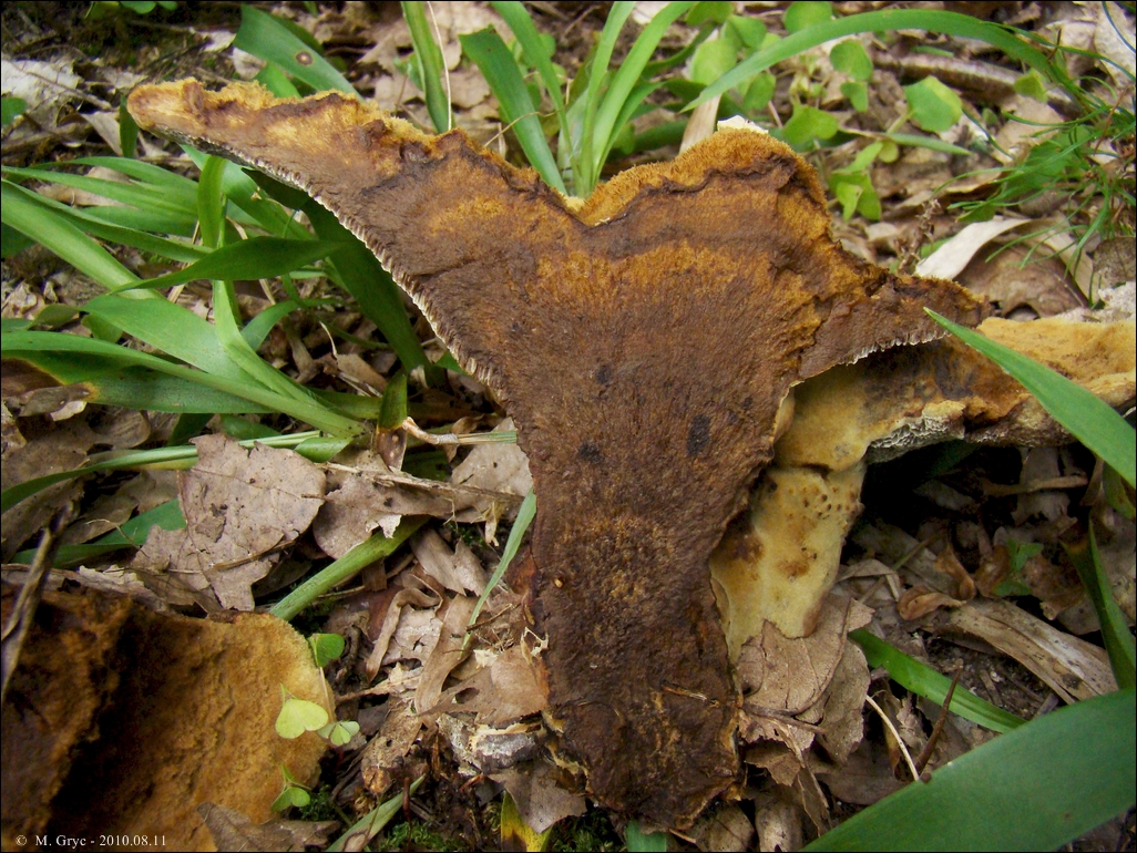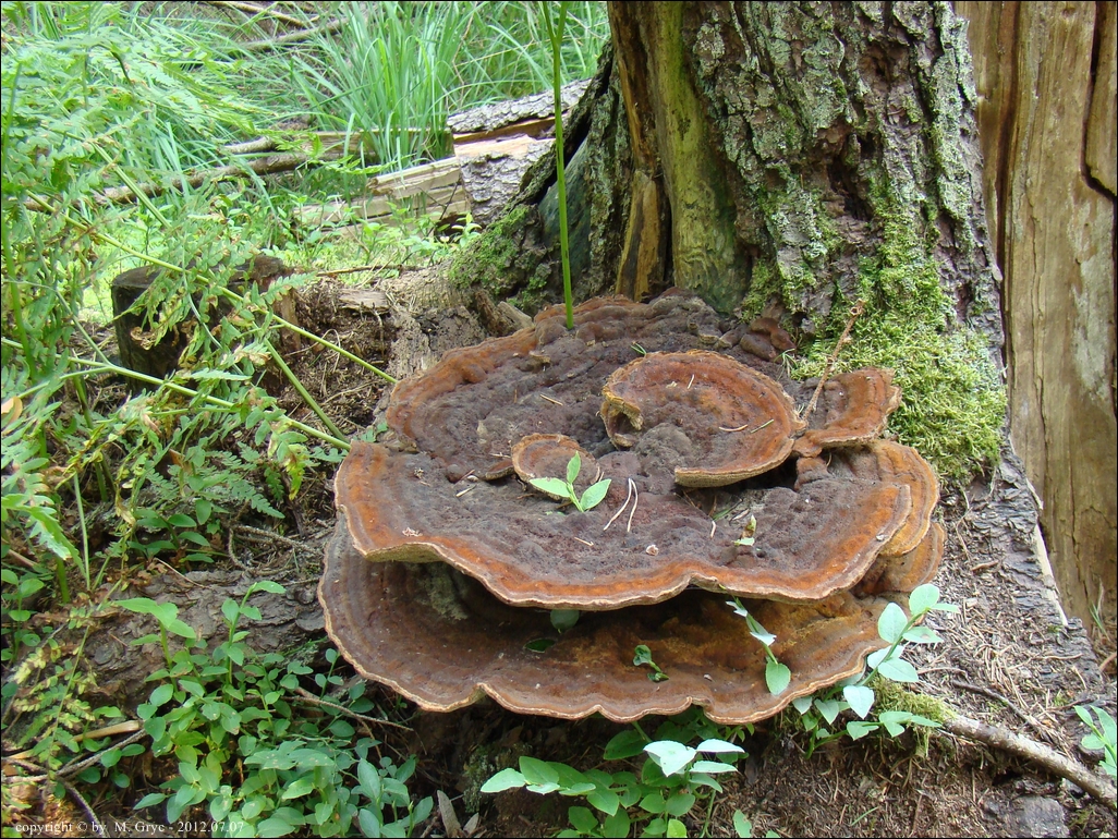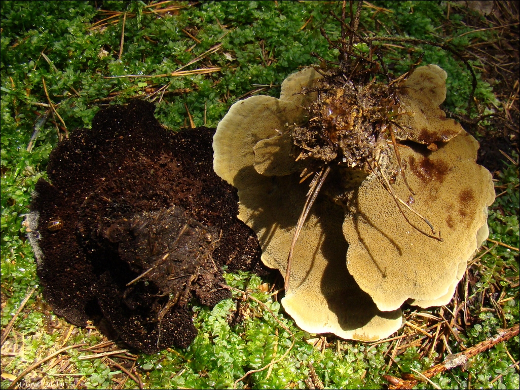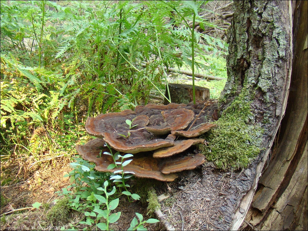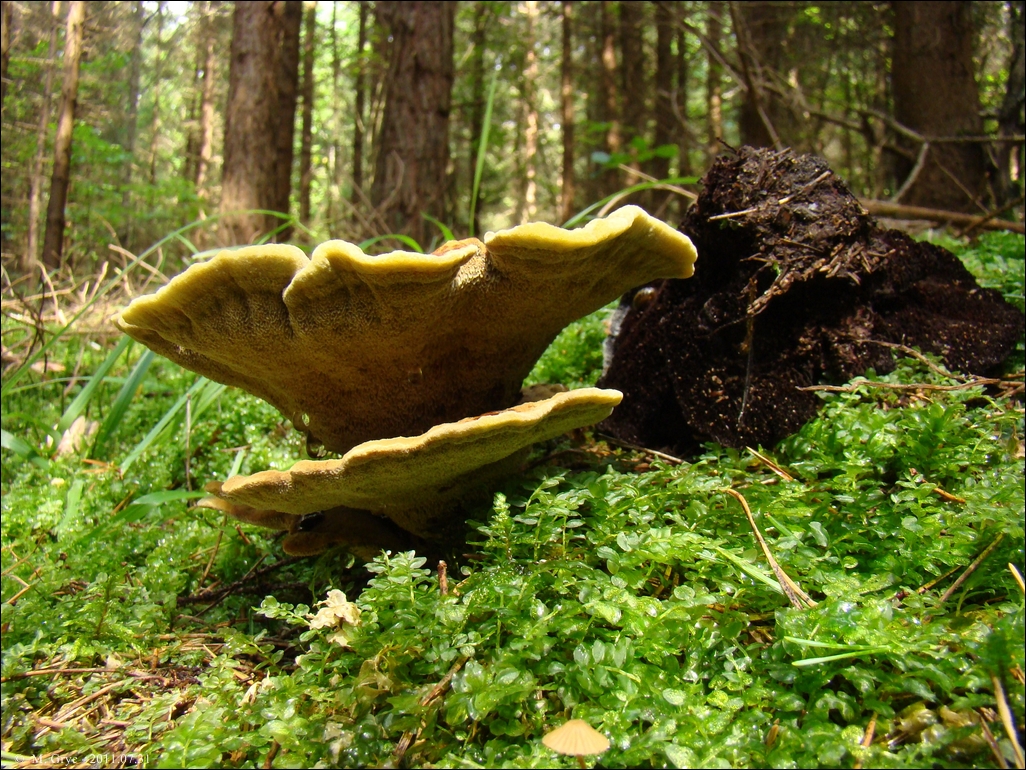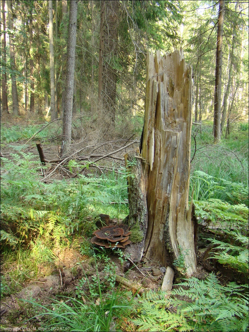 Substrat: Piękny owocnik o całkowitej rozpietości około 40 cm na odziomku pozostałym po złomie świerkowym.