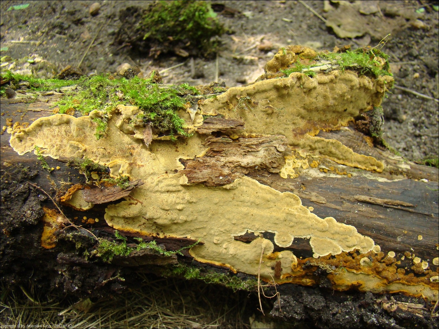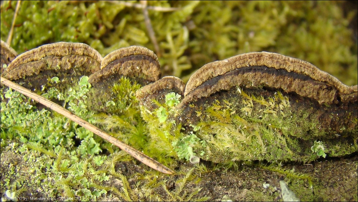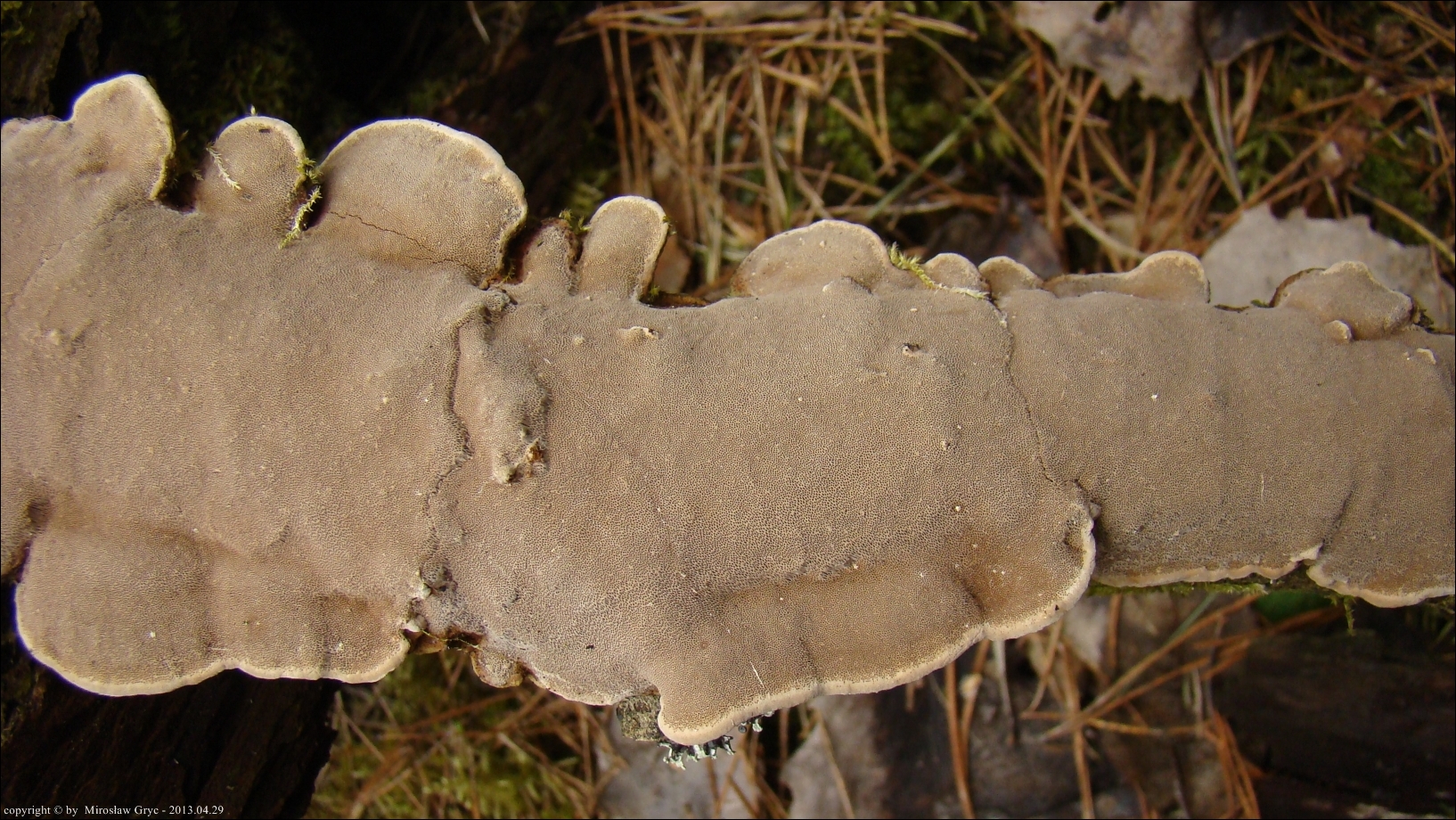 | ID: 230738 z dn. 2013.12.29. (ATPOL: GC-02) | Około 6 km na NE od Supraśla, Puszcza Knyszyńska, pow. białostocki, woj. podlaskie. | Las mieszany (grab, dąb, świerk, inne rzadziej), na dość młodej, zgiętej i obumierającej wierzbie, owocniki w dwóch miejscach. Stanowisko ujęte w pracy zespołowej: Grzyby Puszczy Knyszyńskiej - Anna Kujawa, Błażej Gierczyk, Mirosław Gryc, Marek Wołkowycki - 2019 rok. |