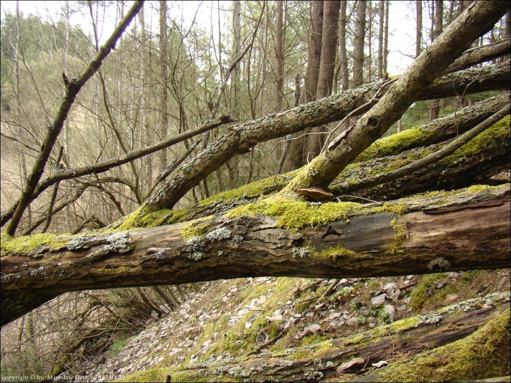 Substrat: Na gałęzi martwej, złamanej wierzby, leżącej na zalesionym stoku wyrobiska.